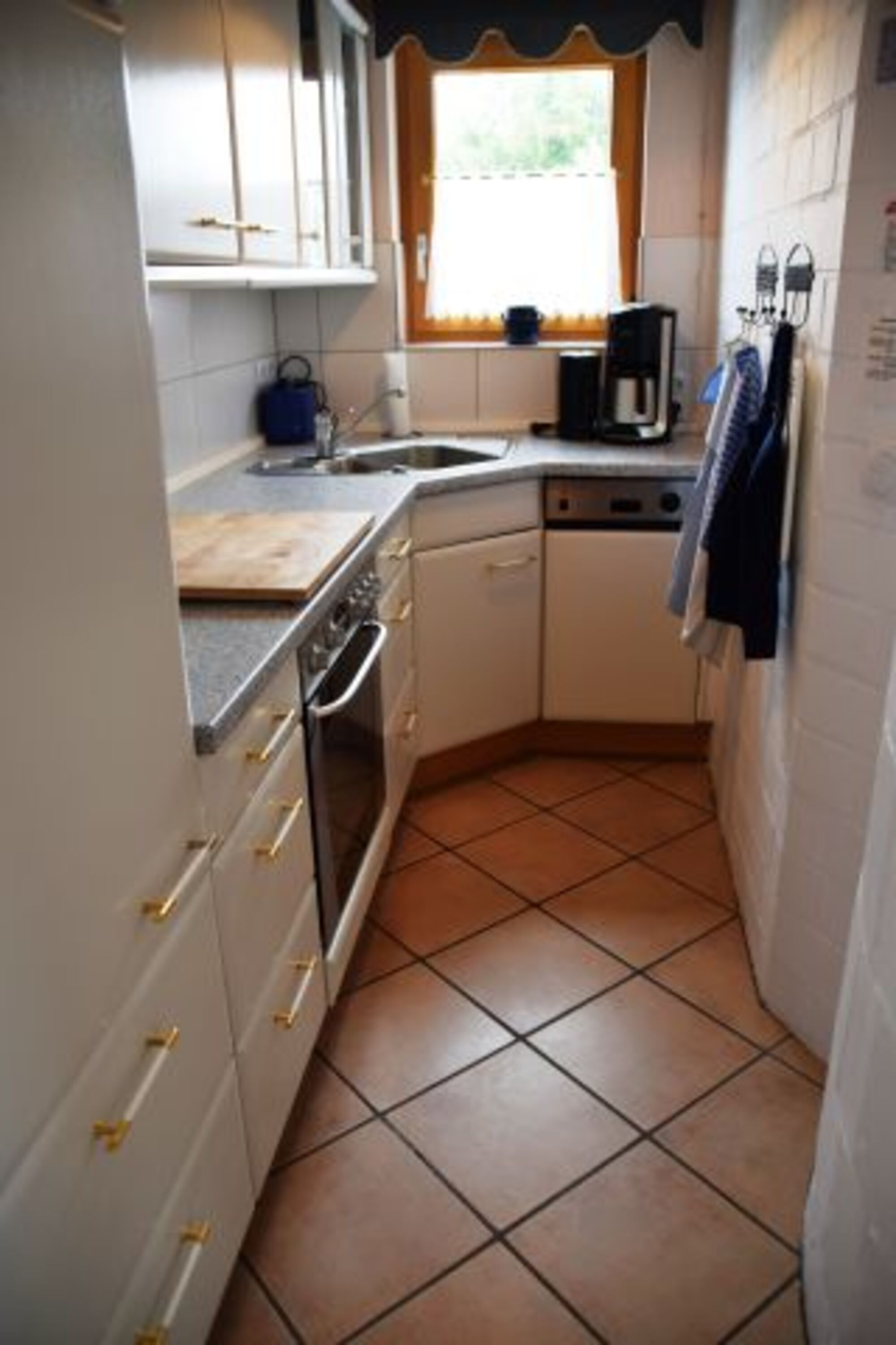 Küche: Kaffeemaschine, Mikrowelle, Geschirrspüler, Kühlschrank mit Gefrierfach, Wasserkocher, Dunstabzugshaube, Cerankochfeld, Backofen, Toaster
