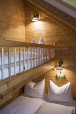 Die Förster-Hütte hat eine Wohnfläche von 175 m² auf zwei Ebenen und bietet Platz für 4 bis 14 Personen. Sie verfügt über 2 Schlafzimmer für je 2 Pers. (jeweils Doppelbett), 2 Schlafzimmer für je 3 Pers. (jeweils Doppel- und Etagenbett), ein Schlafzimmer für 4 Personen (Doppel- und Etagenbett), 3 Bäder, eine voll ausgestattete Vollholzküche, einen gemütlichen Kaminofen, einen privaten Wellnessbereich mit Sauna, eine Außenbadewanne im Garten, einen Ruheraum und einen Zaun rund um das Chalet.