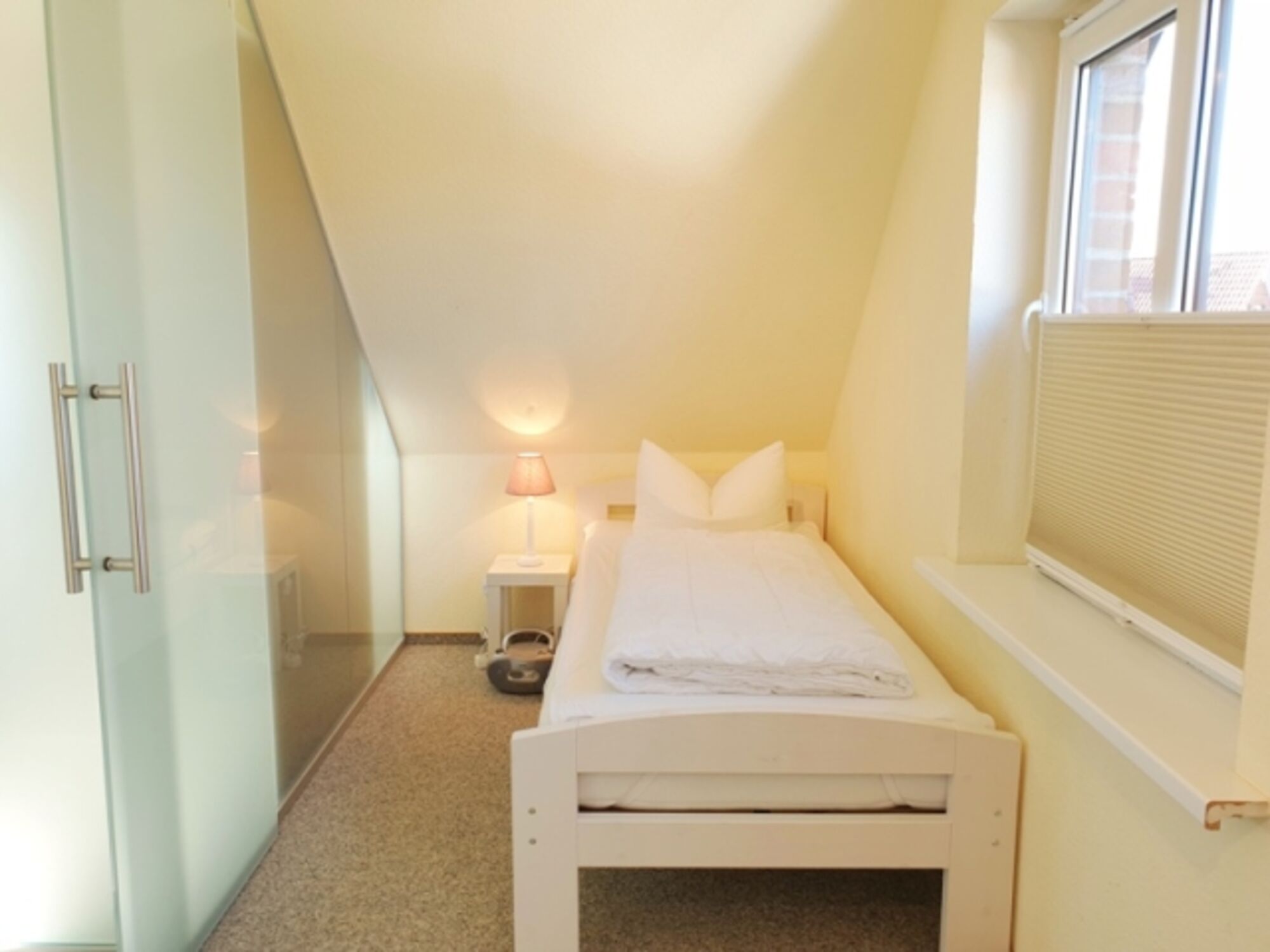 Schlafzimmer 3: 2 Einzelbetten, Wäscheschrank, Plissees
