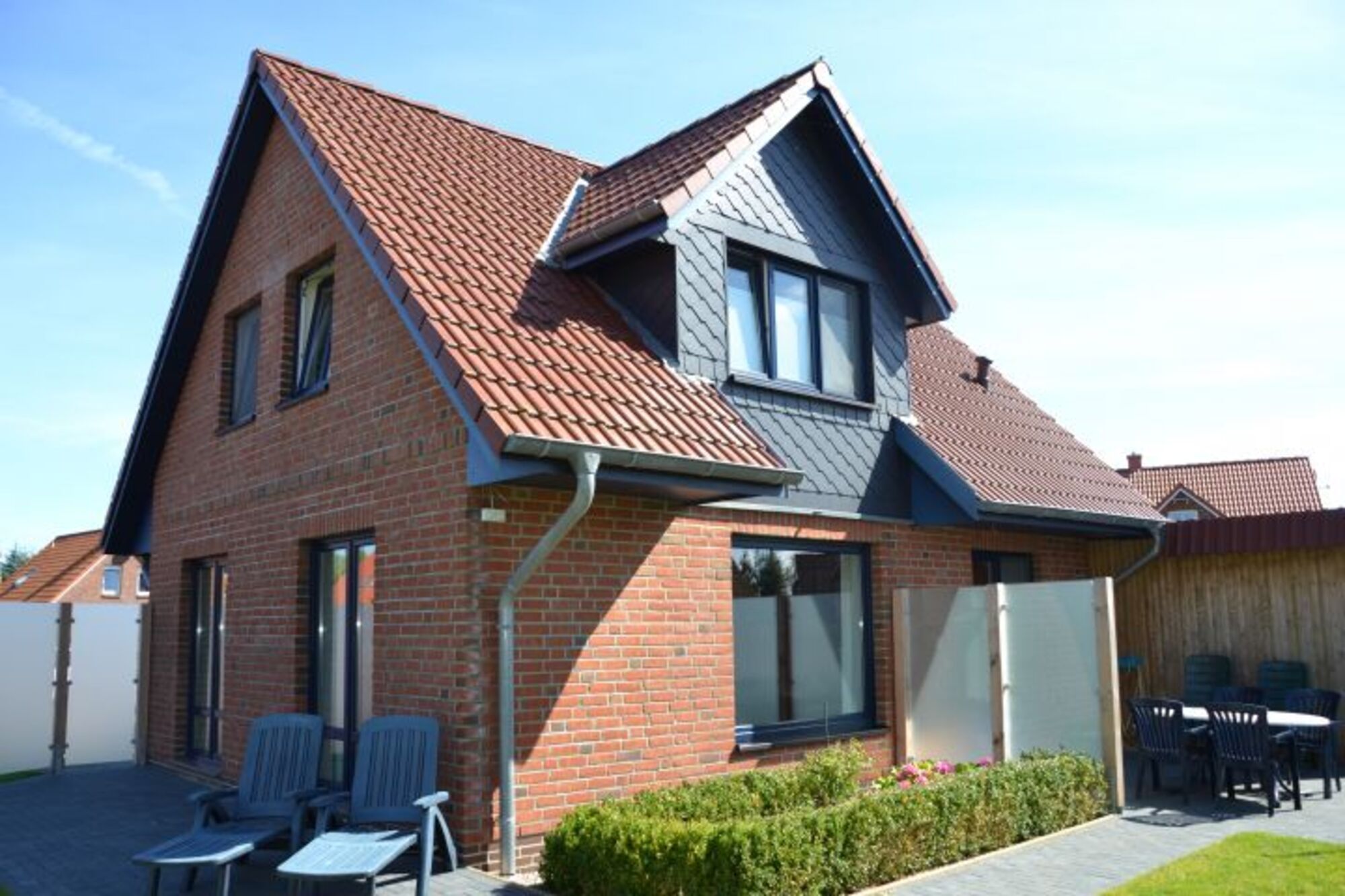 Die Möwe liegt im Herzen des Ferienortes Brasilien und ist etwa 88 qm groß. Das dazu gehörige Grundstück misst ca. 400 qm und ist komplett eingezäunt. Die Terrasse wurde wind- und sicht-geschützt angelegt. Das Domizil ist komplett neu renoviert und liegt in einem verkehrsberuhigten Bereich, der als Spielstraße ausgewiesen ist. Bis zum Strand sind es nur etwa 170 Meter Fußweg – also einmal in Badehose über den Deich und ab in die Fluten. Für unsere Gäste steht eine Fass-Sauna, und für die kalte Jahreszeit ein gemütlicher Specksteinofen , WLAN und Sky zur Verfügung.