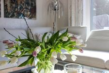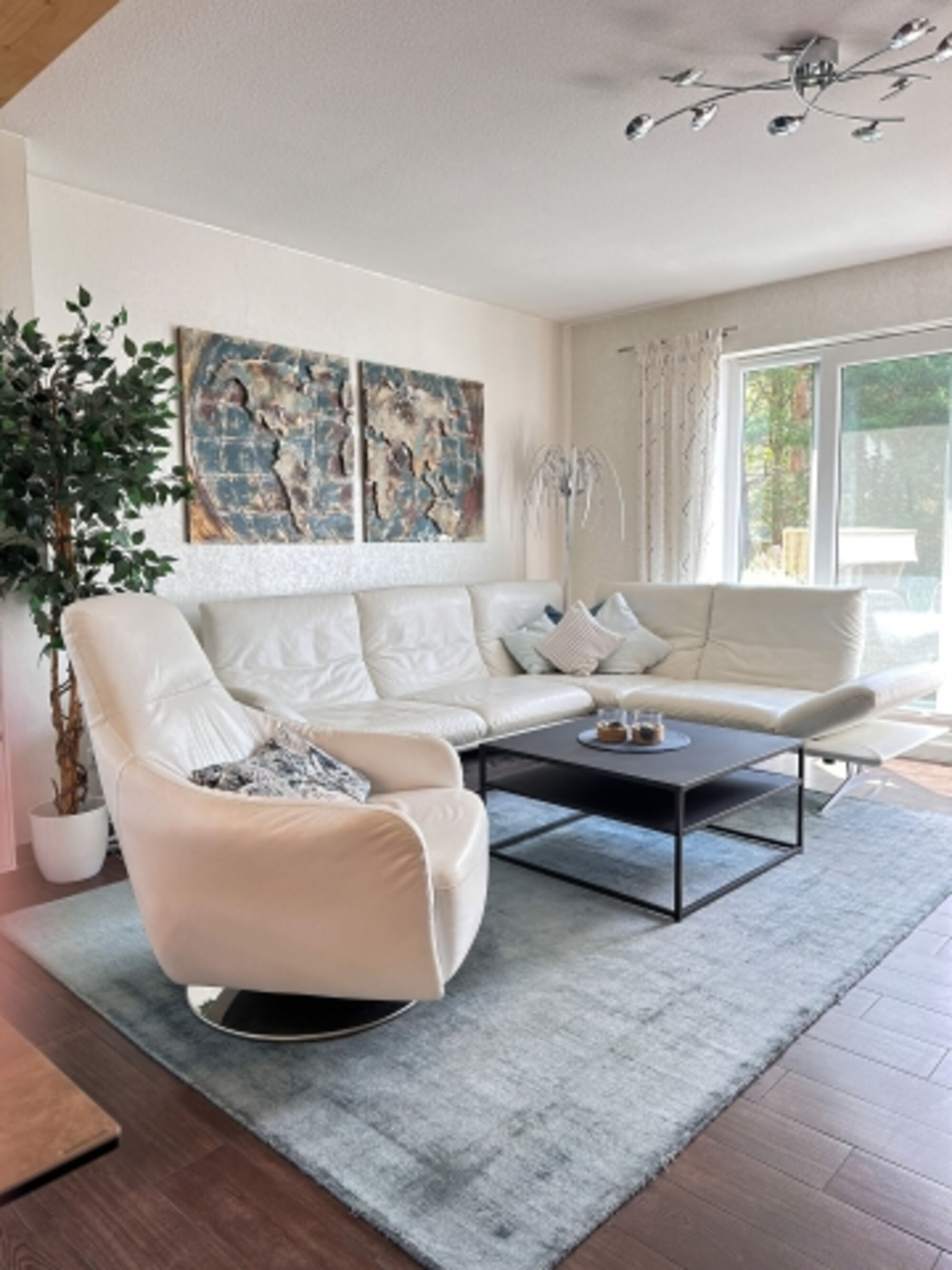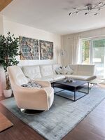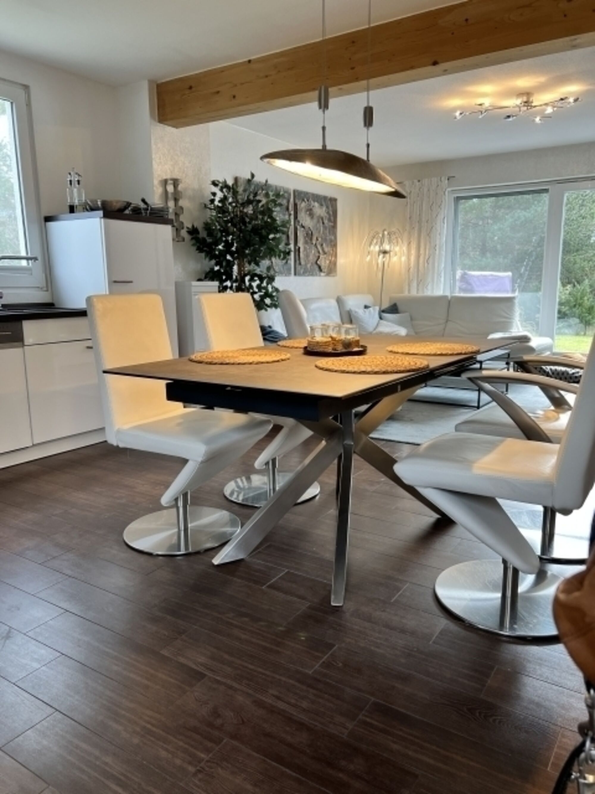 Genießen Ihrer Mahlzeiten am Esstisch und nehmen Sie Platz auf hochwertigen Lederdrehstühlen. Kaffeespezialitäten bereitet der Jura Kaffeevollautomat auf Knopfdruck.
