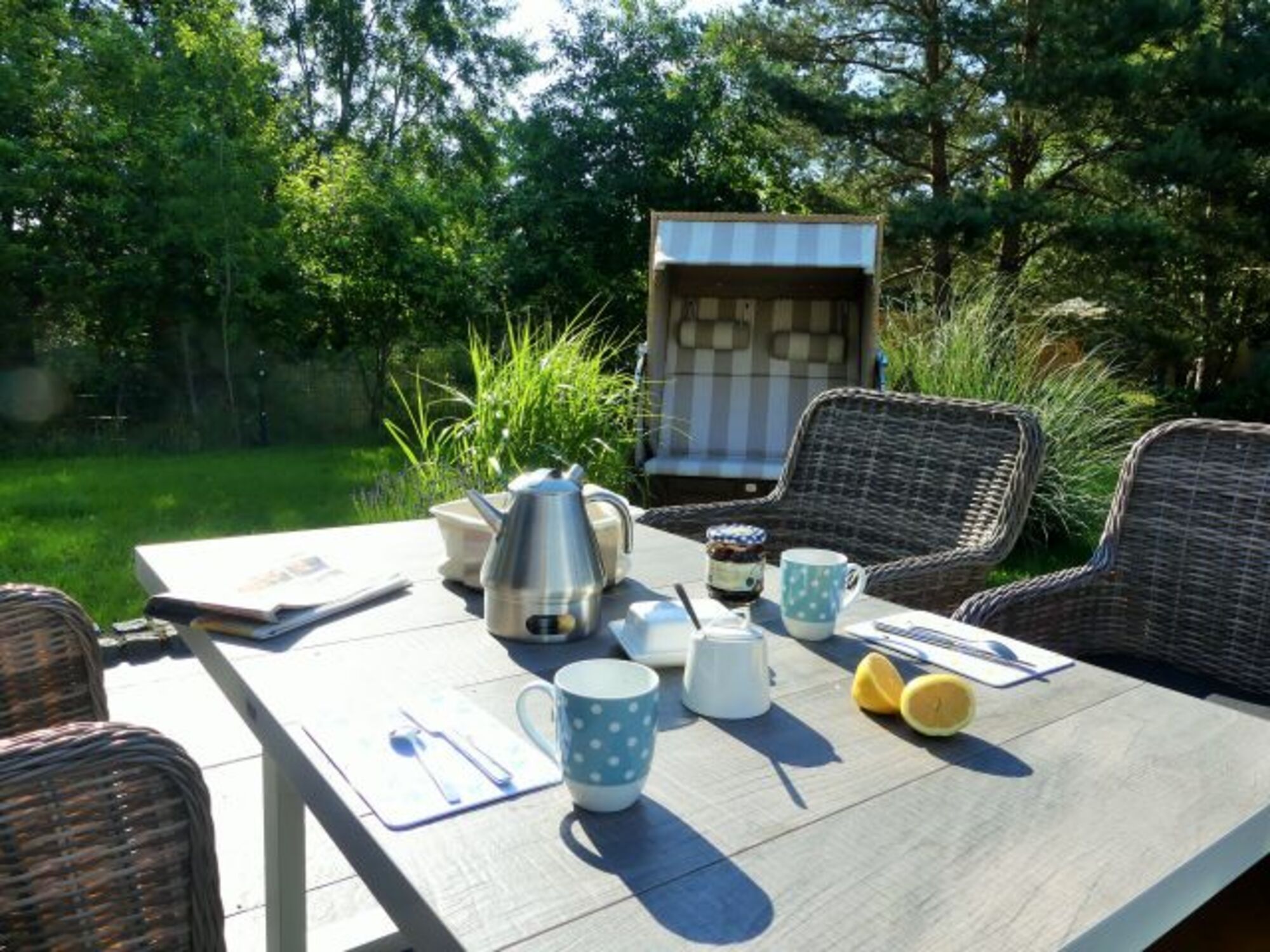 Ob Sie Ruhe suchen ....das Feriendorf Claus Störtebeker ist nahezu autofrei. Auf der Südterrasse, mit Sonne vom Morgen bis zum Abend, können Sie im Strandkorb oder auf bequemen Korbsesseln, einen herrlich ruhigen entspannten Tag verbringen. Falls Sie im Urlaub lieber aktiv sind....mit unseren Fahrrädern können Sie die Umgebung bis zum Strand, auf gut ausgebauten Radwegen, erkunden.