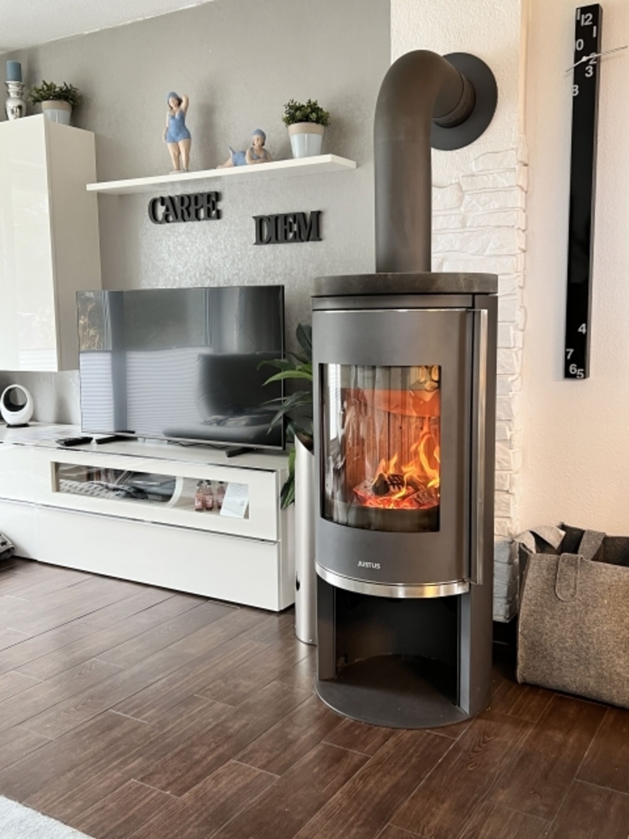 SMART-TV, Blu-Ray-Player, Hi-Fi-Anlage mit Bluetooth, CD-Player, CD´s, Bücher, Kaminofen, Eckcouch, Sessel