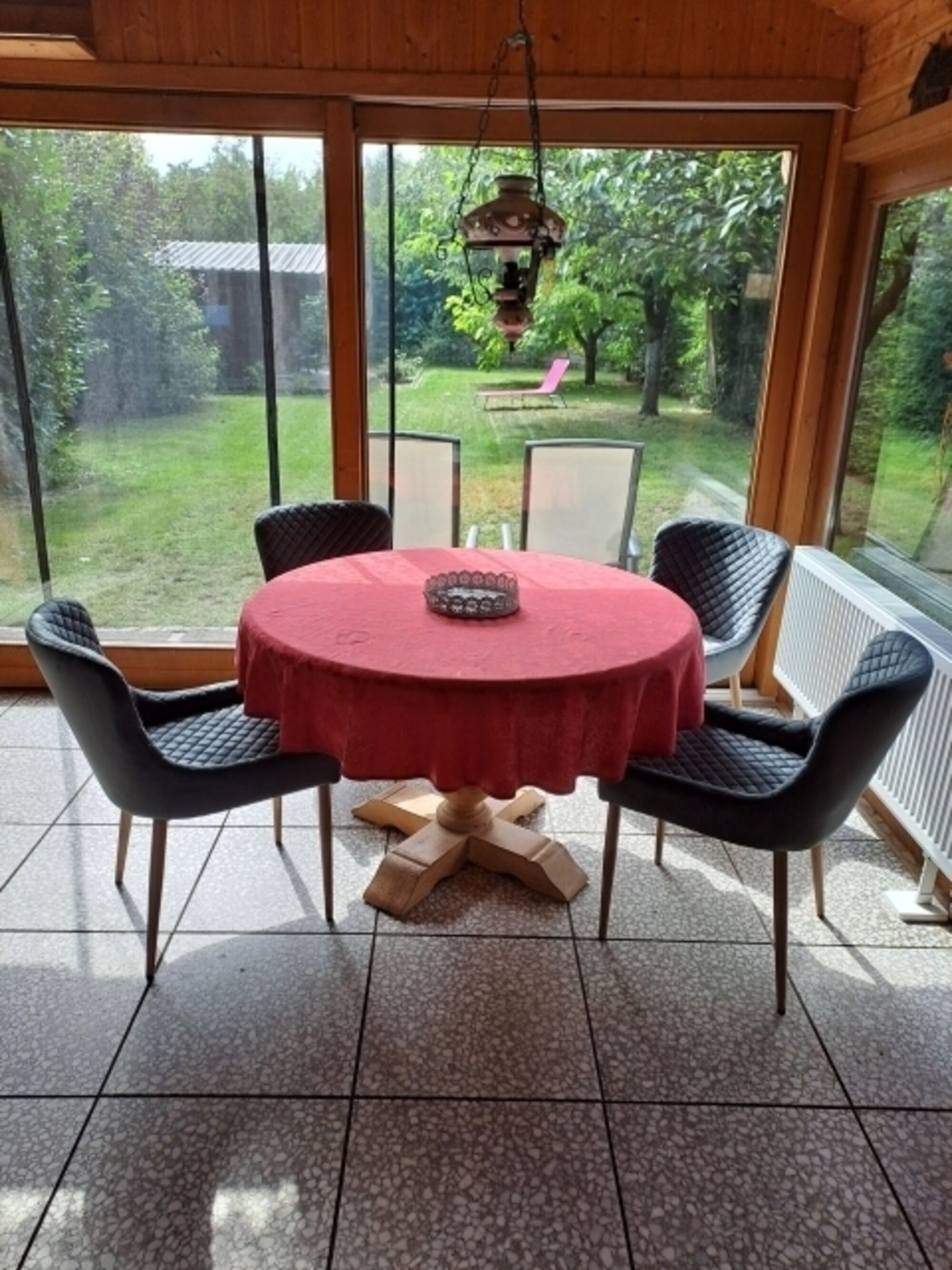 Vom Wintergarten aus hat man einen tollen Blick in den Garten und kann, wenn man möchte, direkt durch den Gartenausgang den Rundgang um die Seen beginnen.