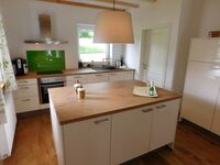 4-Platten Herd, Cerankochfeld, Dunstabzugshaube, Kühlschrank mit Gefrierfach, Kaffeevollautomat, Küchenmaschine, Mixer, Korkenzieher / Flaschenöffner, Gewürze (Salz, Pfeffer, Zucker), Öl / Essig, Geschirrhandtücher, Mülltüten