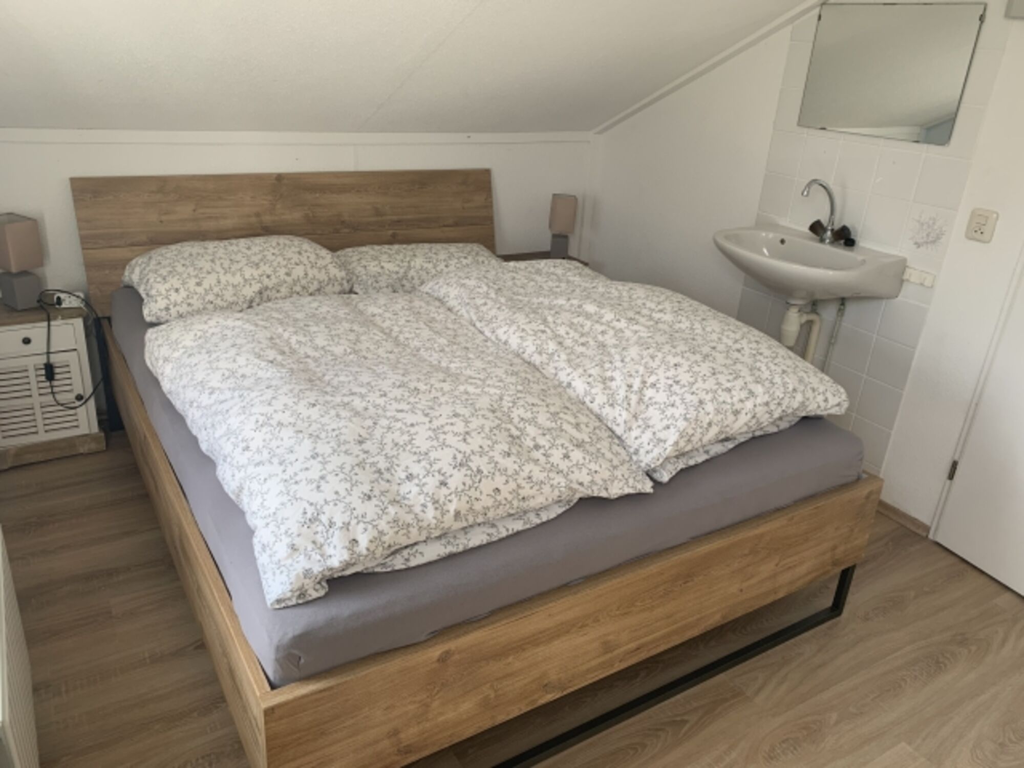 Einzelbett, Kommode, Spiegel