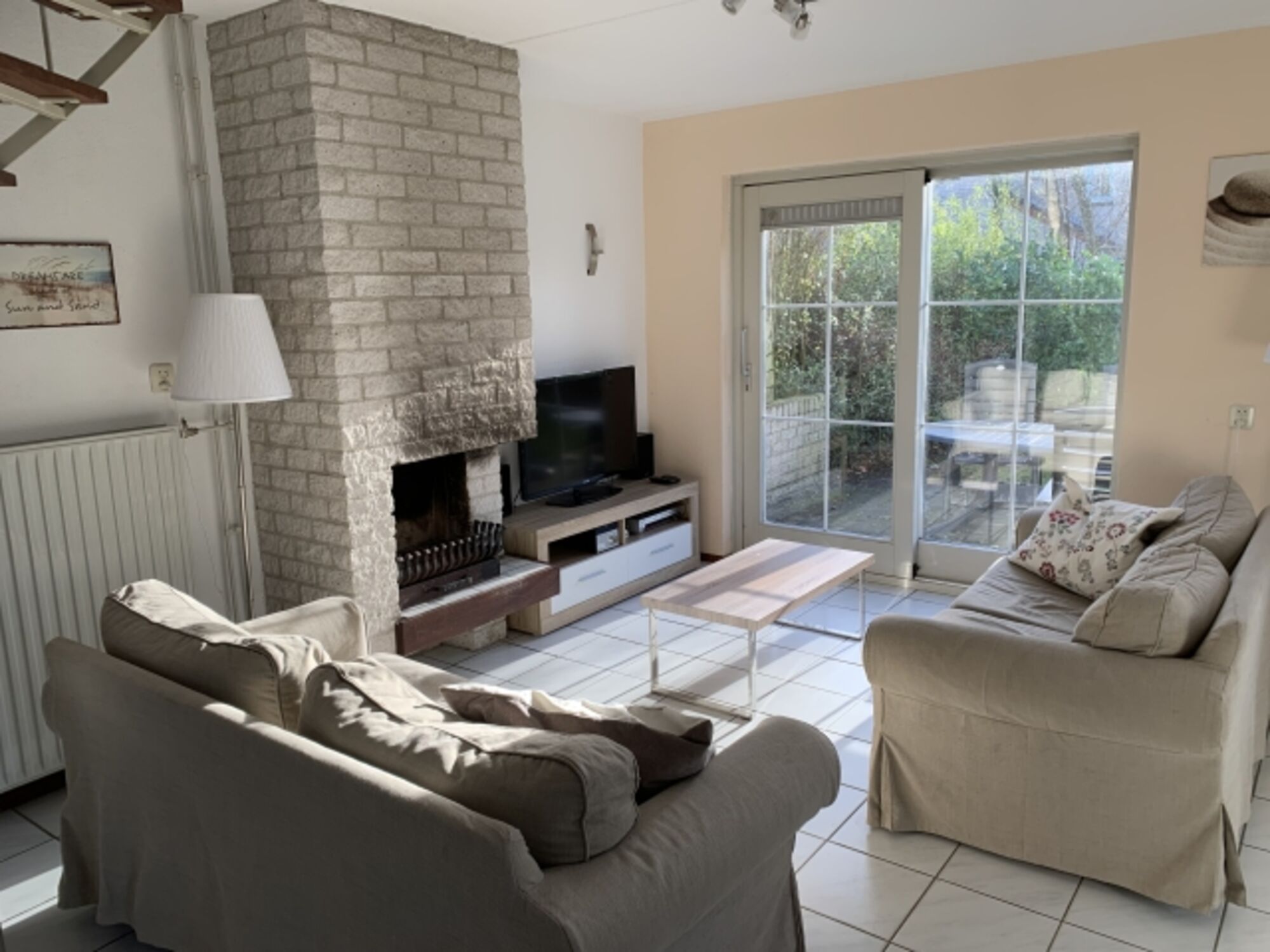 TV, TV-Kabel, TV-Flachbildschirm, DVD-Player, Hi-Fi-Anlage mit Bluetooth, CD-Player, Bücher, Offener Kamin, 2er-Sofa