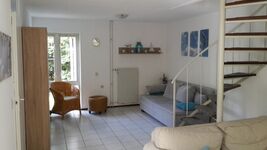 Im Erdgeschoss befinden sich der geräumige Wohn-/Küchen-/Essbereich, ein Badezimmer mit Dusche und ein separates WC. In der 1. Etage sind zwei Schlafzimmer mit jeweils zwei Betten.