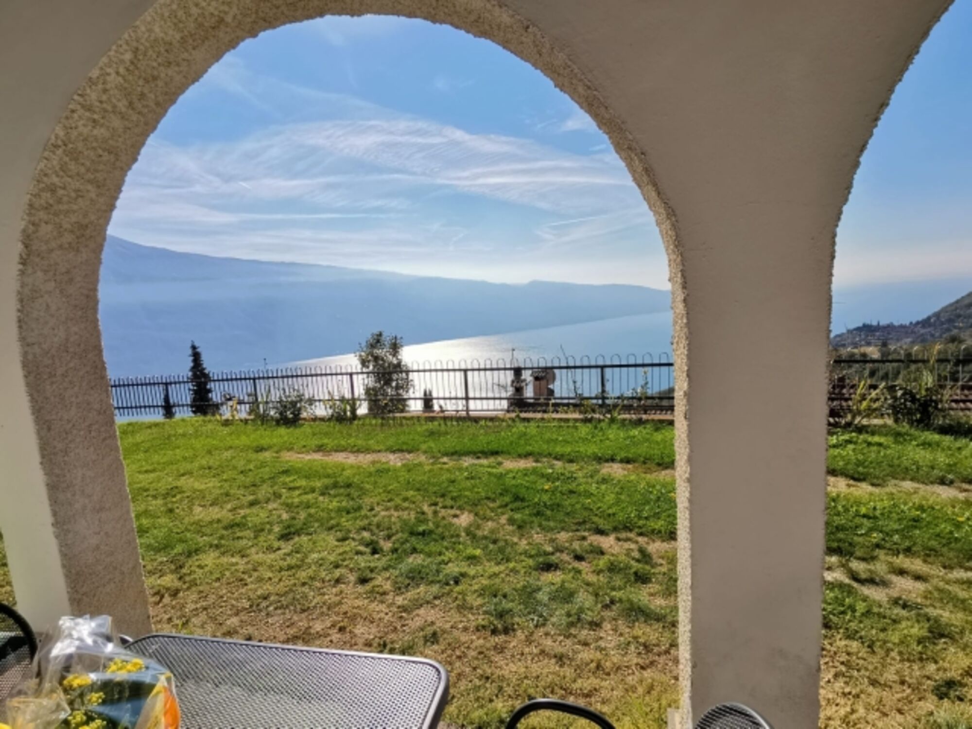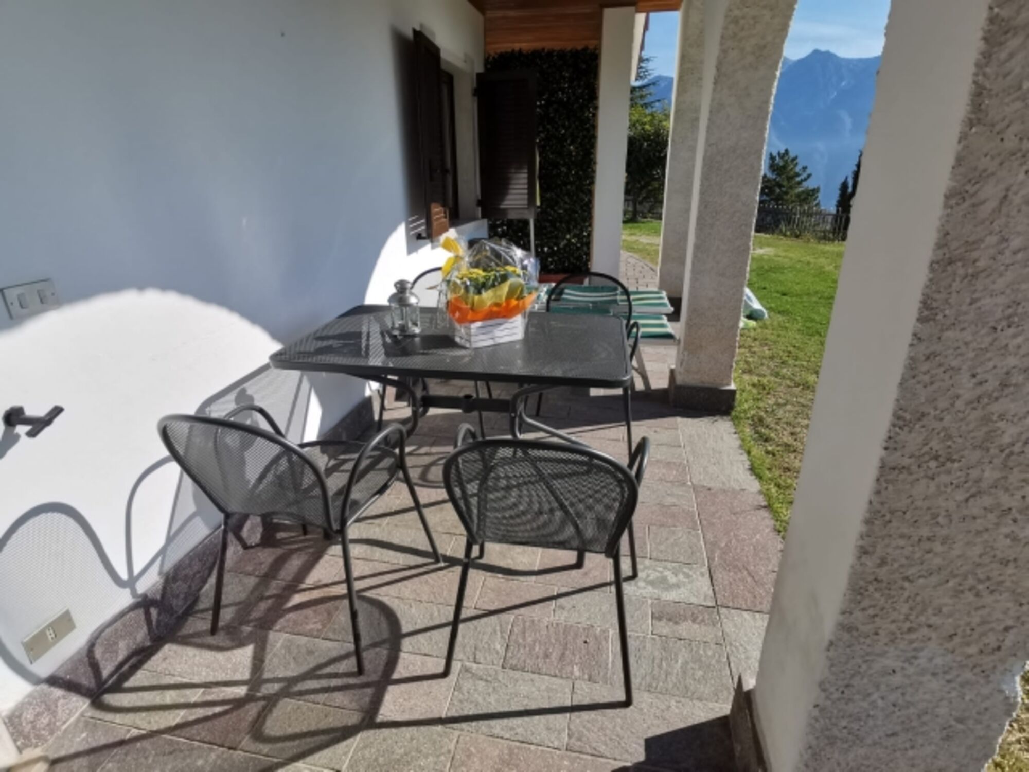 Auf der überdachten Terrasse stehen Ihnen ein Sonnenschirm, Tisch mit 4 Stühlen sowie 2 Strandliegen zur Verfügung. Zusätzlich gibt es einen großen Gemeinschaftsgarten mit Liegewiese. Für Ihr Auto gibt es einen überdachten Stellplatz, wie auch eine Unterbringunsmöglichkeit für Ihre Fahrräder oder Motorräder. In ca. 7 Minuten zu Fuß erreichen Sie den Ortskern von Gardola, wo es alle Einkaufsmöglichkeiten, Cafés, Restaurants sowie Arzt und Apotheke gibt.