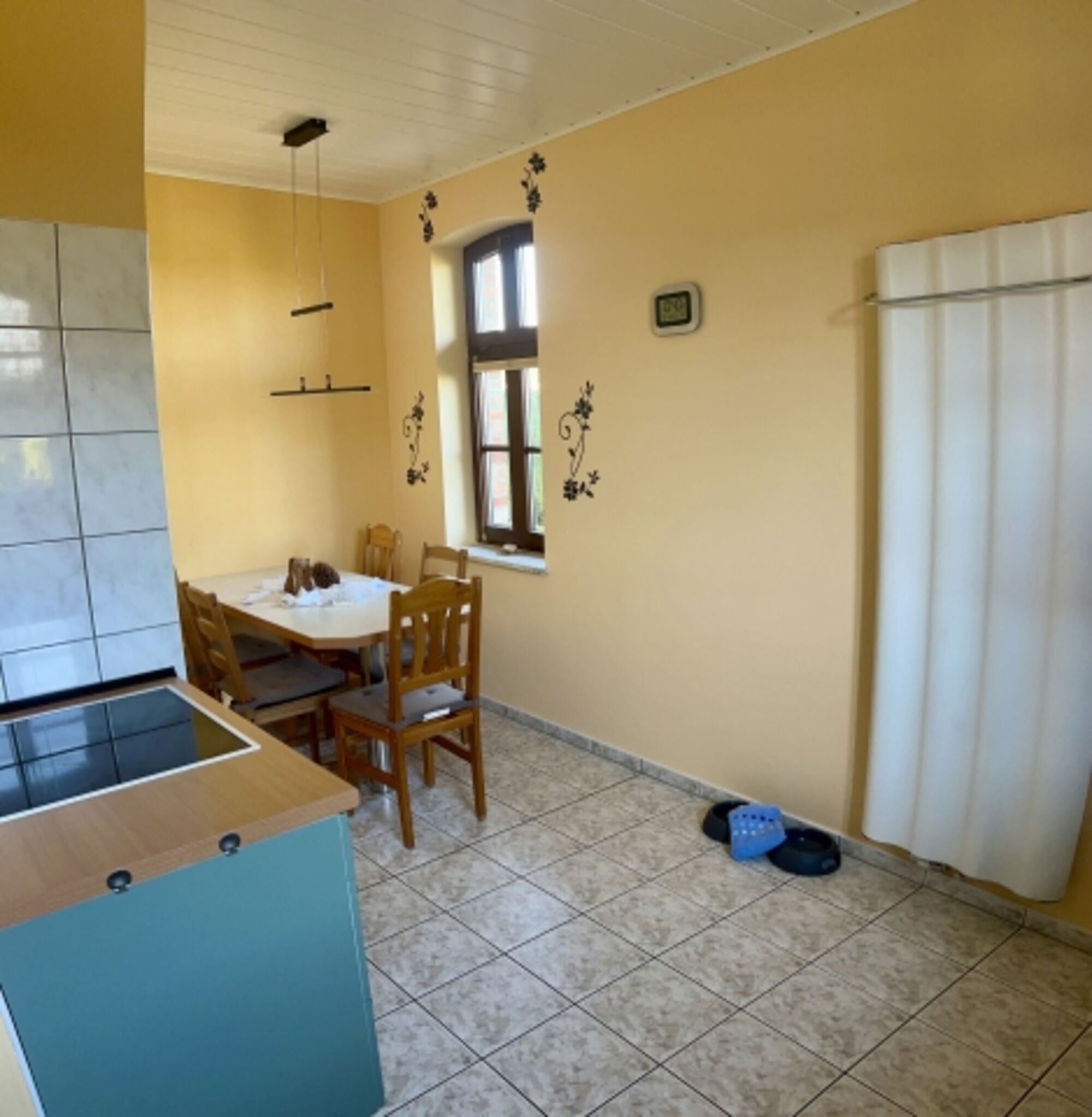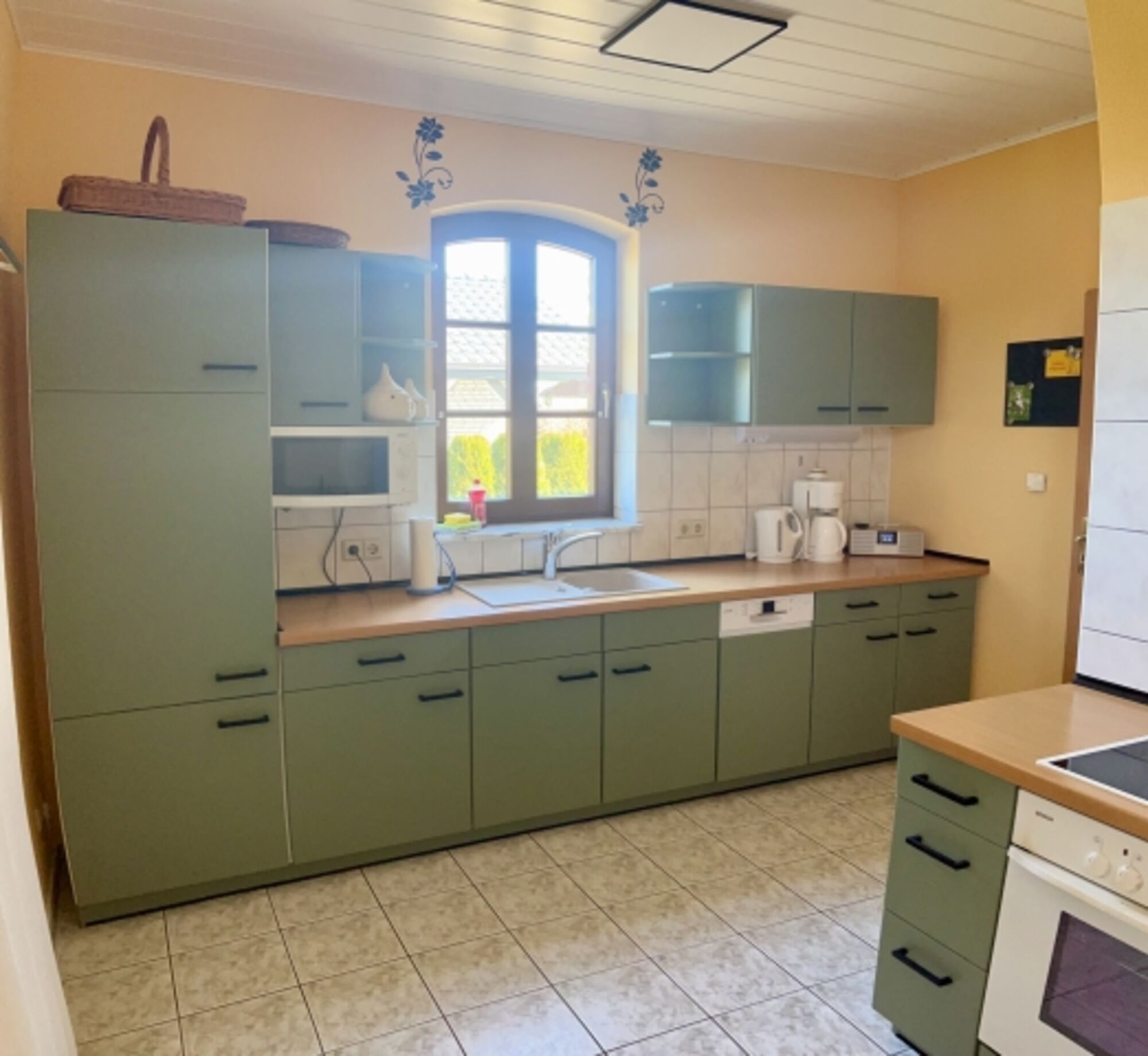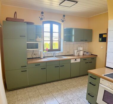 4-Platten Herd, Cerankochfeld, Eierkocher, Korkenzieher / Flaschenöffner, Gewürze (Salz, Pfeffer, Zucker), Öl / Essig, Geschirrhandtücher, Mülltüten, Essplatz in der Küche