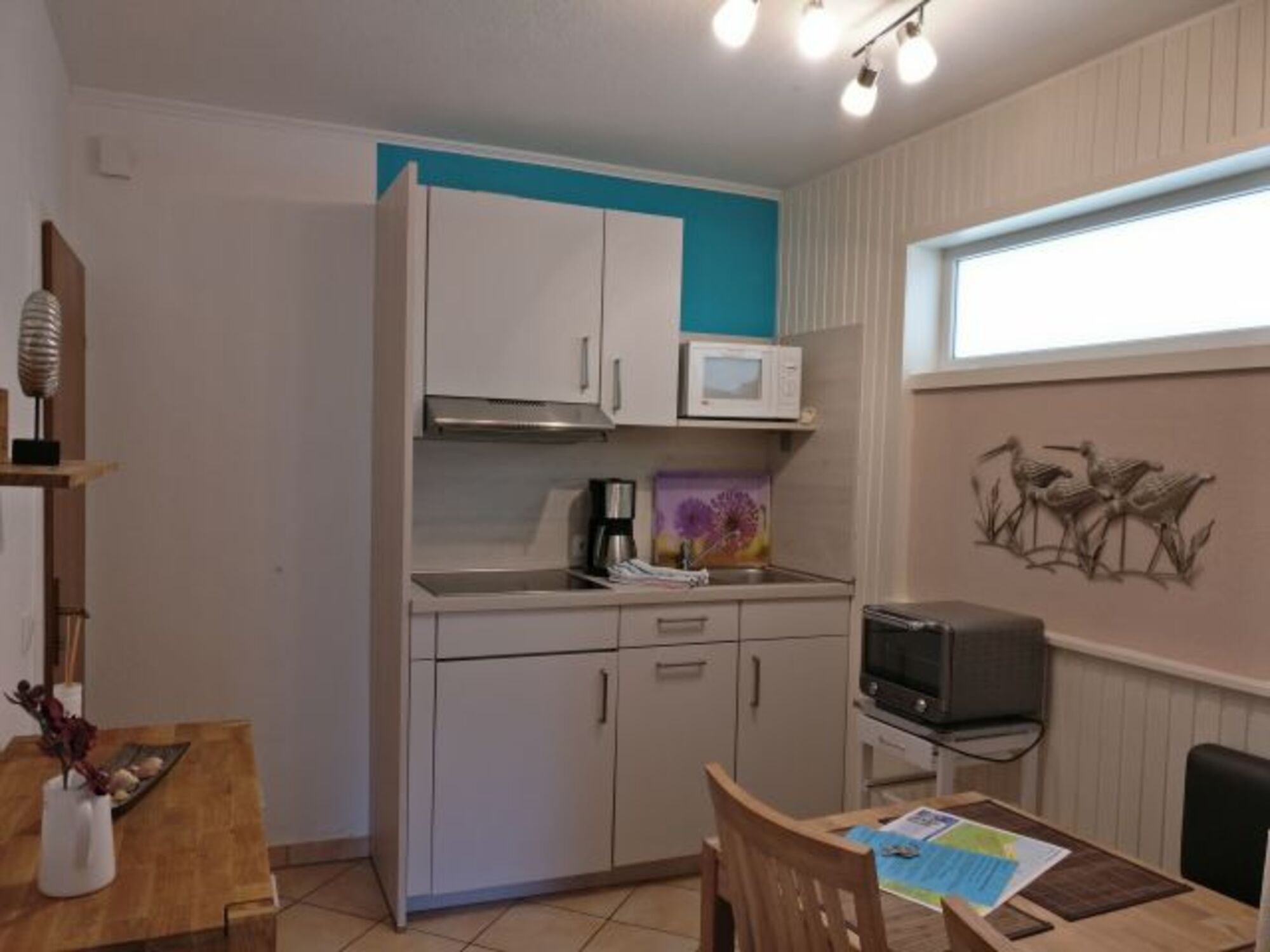 Eine kleine separate Küche mit gemütlicher Sitzecke steht Ihnen zur Verfügung.