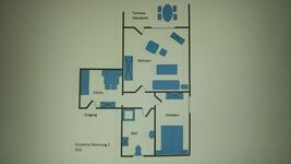 1- 3 Gäste finden auf 45m² Platz, mit Terrasse und eingezäuntem Garten (1,20 m hoch) -mit südlicher Ausrichtung-. Neben dem Schlafzimmer mit Doppelbett steht im großen Wohnzimmer ein komfortables Schrankbett mit Lattenrost und Matratze zur Verfügung.