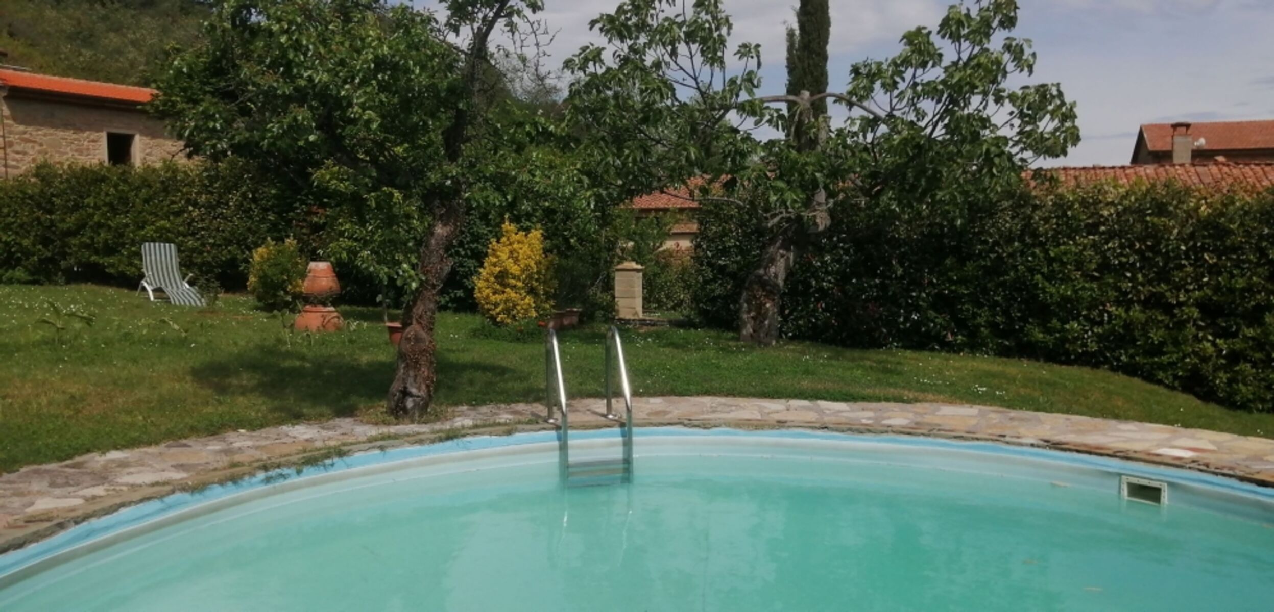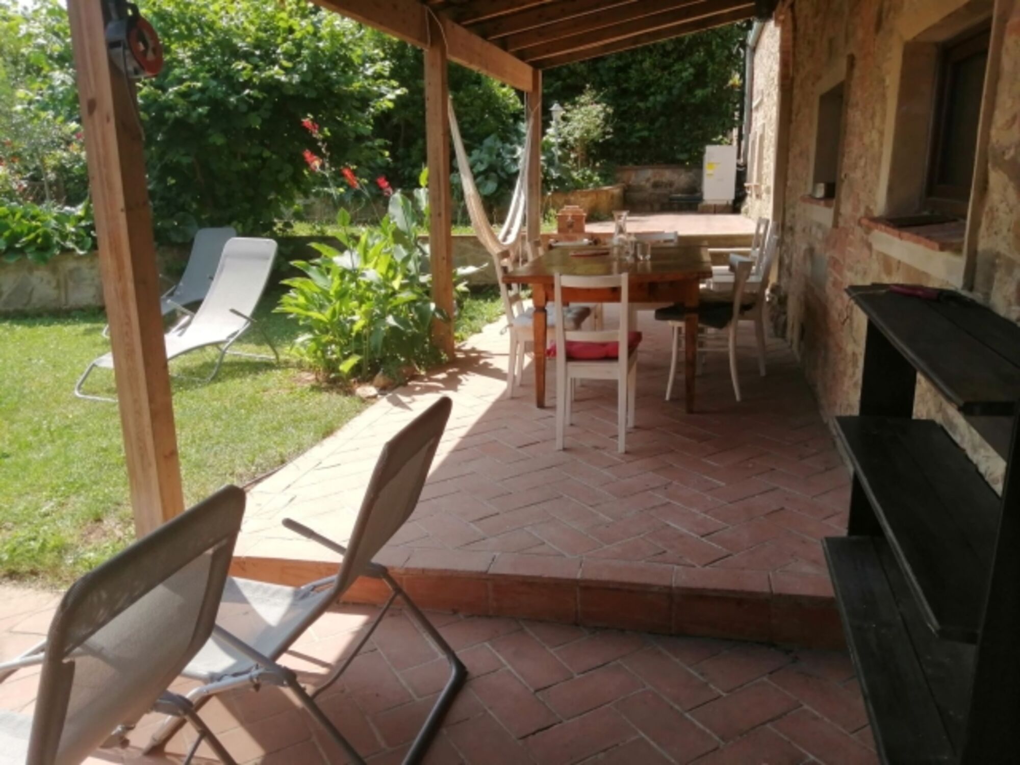 Das Ferienhaus bei Chianni ( 1 KM ) ist eine unabhängige Haushälfte, auf mehreren Ebenen Befinden sich ein Wohnzimmer, ein WC und eine voll ausgestattete Wohnküche mit 5 Plattenherd, Backofen, Mikrowelle, Geschirrspüler Kühlschrank und Essplatz. ,Im Untergeschoss befindet sich ein Yoga oder Spielraum ein Dppelzimmer ein Wc und ein Duschbad, im Obergeschoss ein Duschbad mit WC und Bidet und 3 Schlafzimmer ( eines mit Doppelbett und Kinderbett, eines mit Etagenbett und eines mit Doppelbett ) , Das Haus hat einen privaten , umzäunten Gartenanteil und liegt ausserdem in einem komplett umzäunten Anwesen. Es steht ein privater Pool zu Ihrer Verfügung, mit 8 m Durchmesser und bis zu 2 m Tiefe .