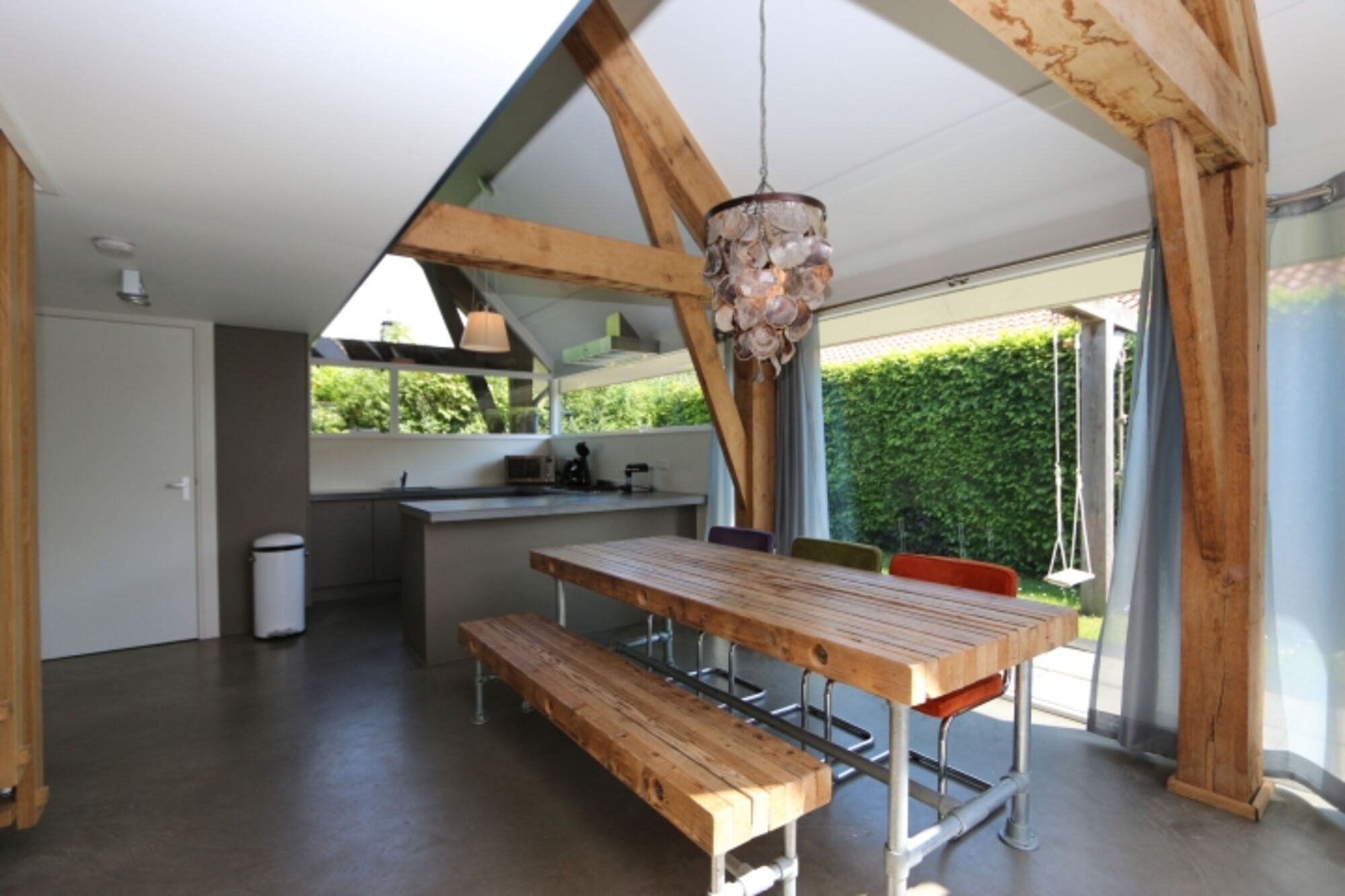 Durch die Küchentür (die Schiebetür ist außer Betrieb), kommen Sie auf dieTerrasse. Der Garten ist übersichtlich hat aber alles was man brauch für einen erholsamen Urlaub. Er ist zudem komplett umzäunt und verfügt über eine Schaukel.