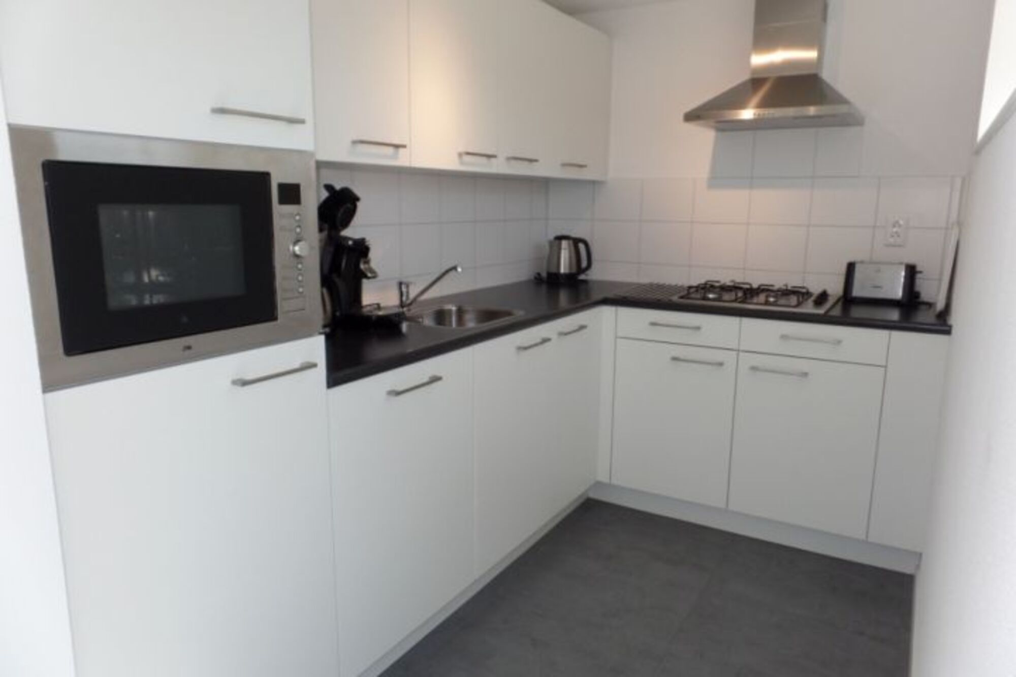 4-Platten Herd, Kühlschrank mit Gefrierfach, Senseo-Kaffeeautomat, Nespresso-Automat