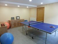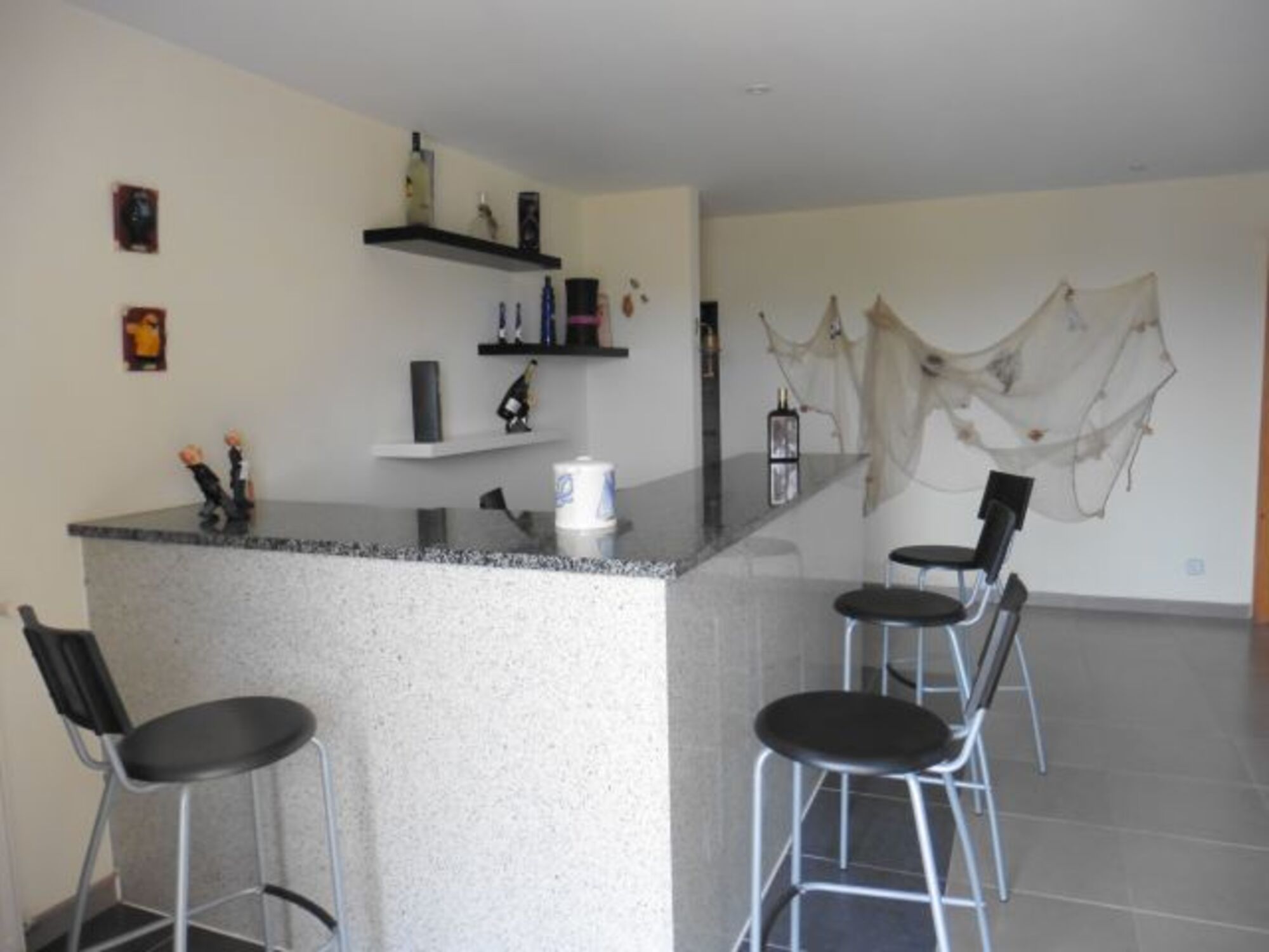 Im Untergeschoss befinden sich 3 Doppelschlafzimmer, zwei Badezimmer, ein großes Spielzimmer mit Tischtennisplatte und eine Bar mit direktem Zugang in den Garten und zum Pool.