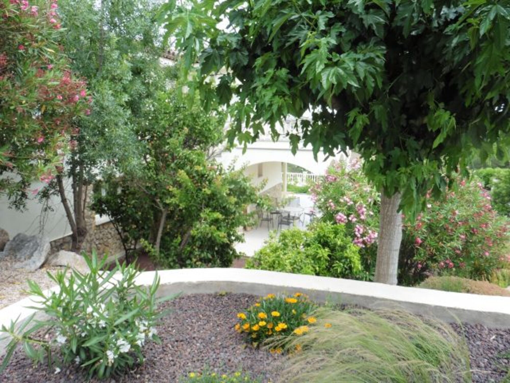 Das mit 1.200 qm riesige Grundstück ist grosszügig angelegt und komplett abgeschlossen. Es verfügt über einen großen 5 x 10 m Pool mit Liegefläche und 10 Sonnenliegen.Ein großer gemütlicher Sitzplatz mit Lounge Möbeln ist oberhalb des Pools vorhanden.