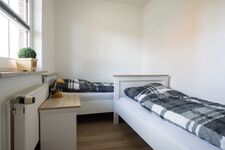 Es sind 2 nicht zusammen stehende Einzelbetten 0,90 x 2,00m vorhanden. Einzelbett, Leselampe am Bett