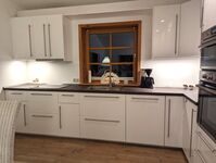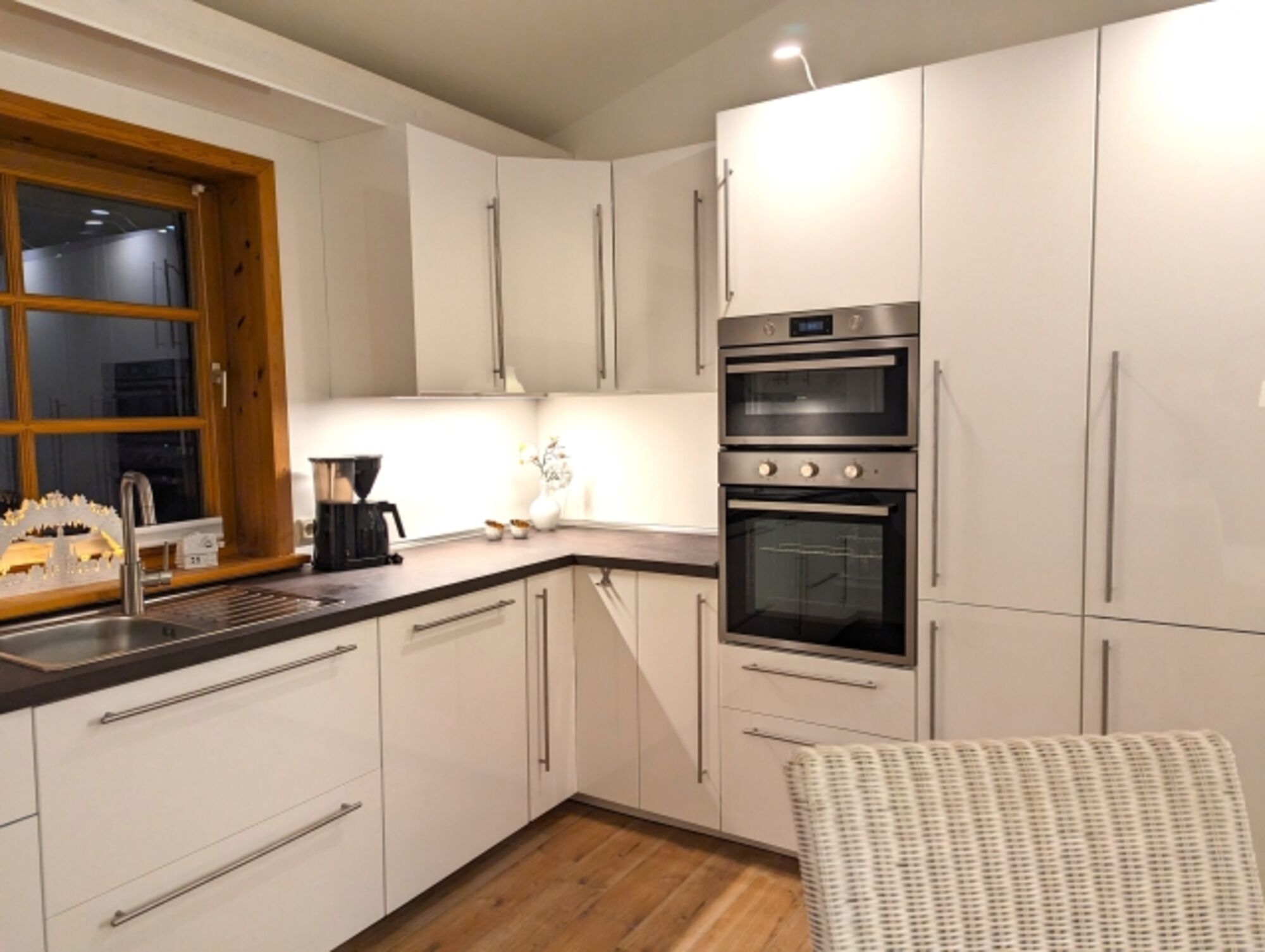 Die Küche bietet einen schönen Blick auf den wunderschönen See. Hier finden Sie neben Kühlschrank, Tiefkühlschrank, Mikrowelle, Herd mit Cerankochfeld, Spüle, Geschirrspüler, Kaffeemaschine und Toaster, genügend Eß- und Kochgeschirr, Gläser und Bestecke vor.