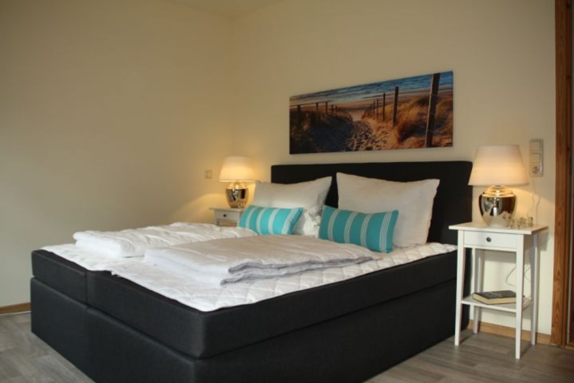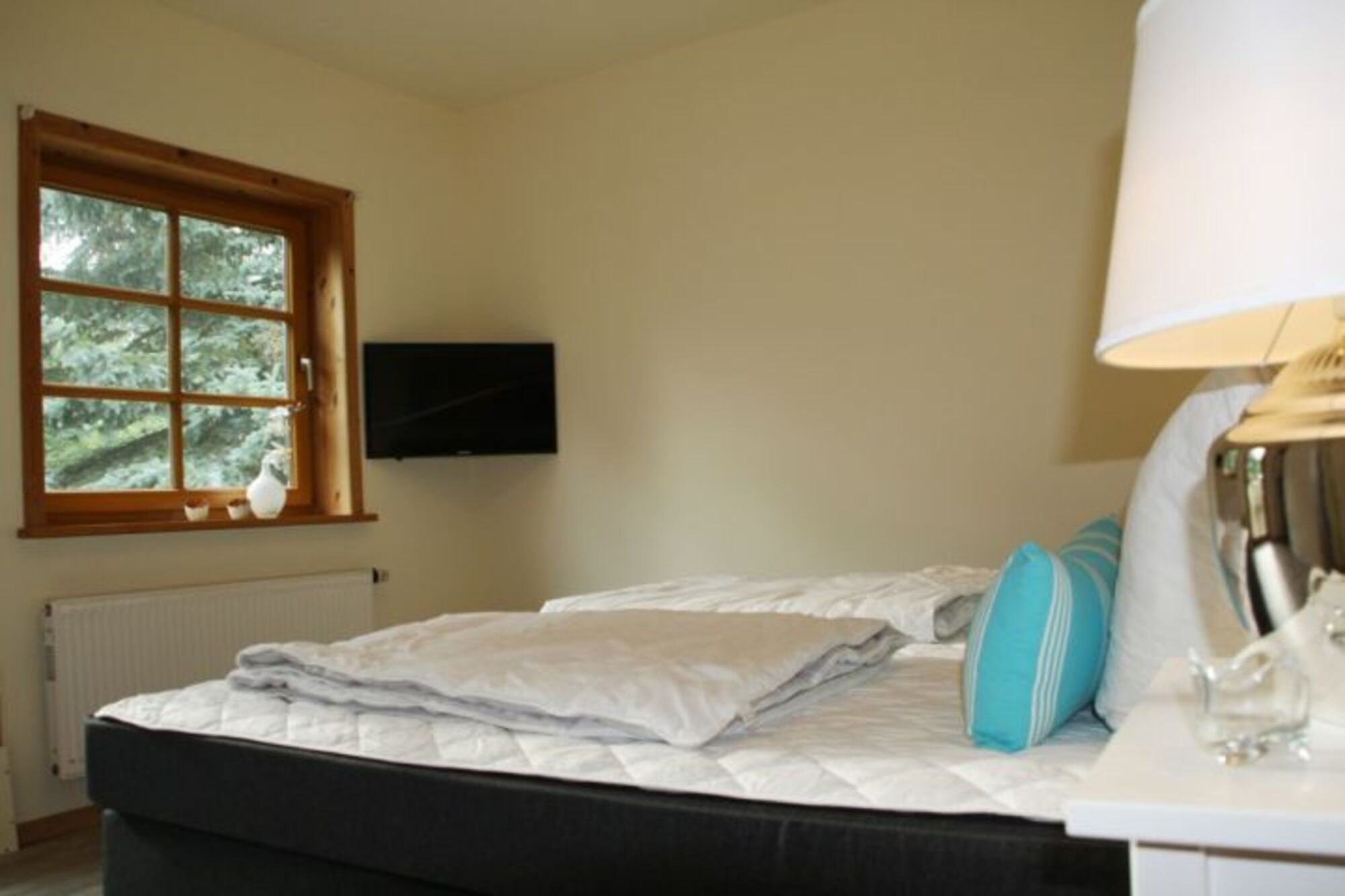 In dem schönen ebenerdigen Holzhaus für 4 Personen, befinden sich 2 Schlafzimmer mit Boxspringbetten und TV, des weiteren