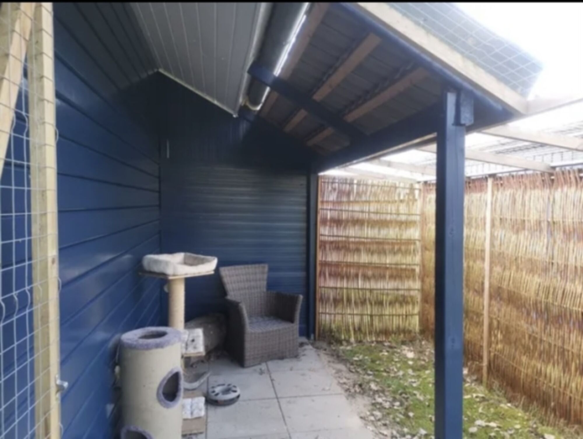 Da bei uns auch Katzen gern gesehene Haustiere sind, befindet sich ein Katzenfreigehege direkt am Haus mit Katzenklappe durch eines der Bäder