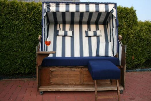 Liegewiese, Strandkorb, Gartenmöbel, Kohlegrill, Überdachte Terrasse (mobil), Windschutz