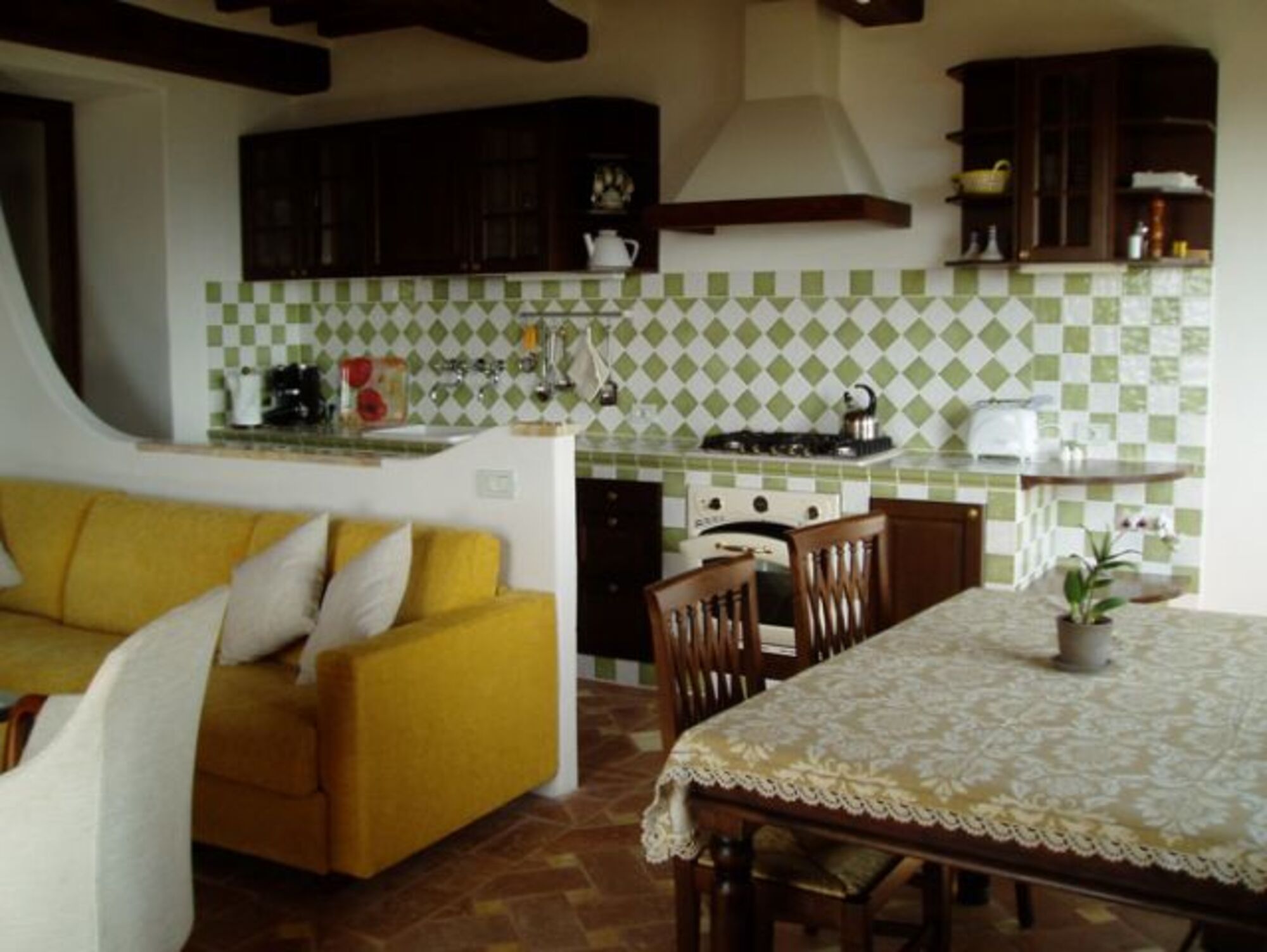 Im Kinderschlafzimmer befindet sich ein Stockbett. In der Wohn-Küche ist ein Esstisch mit komplett ausgestatteter Küche (5 flammiger Gasherd mit Dunstabzugshaube, Backofen, Kühlschrank mit Frostfach, Espressomaschine und Deutsche Kaffeemaschine, Toaster und Stabmixer...).