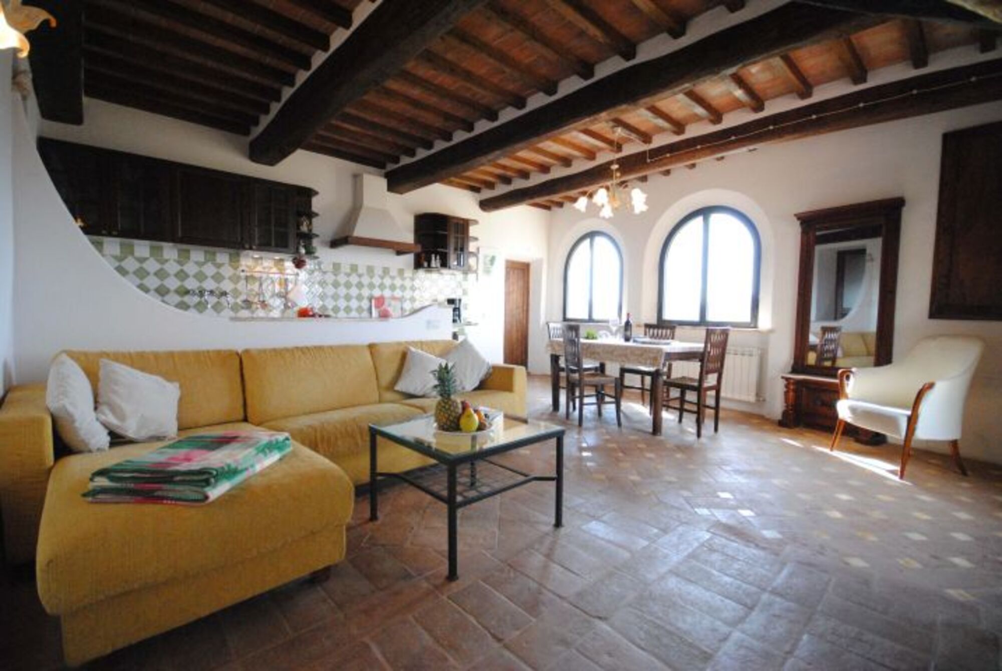 Im Jahr 2008 wurde das Appartement in typischem toskanischen Stil neu renoviert und ist ausgestattet mit einer Wohn-Küche, 2 Schlafzimmern und Bad mit Dusche/WC.