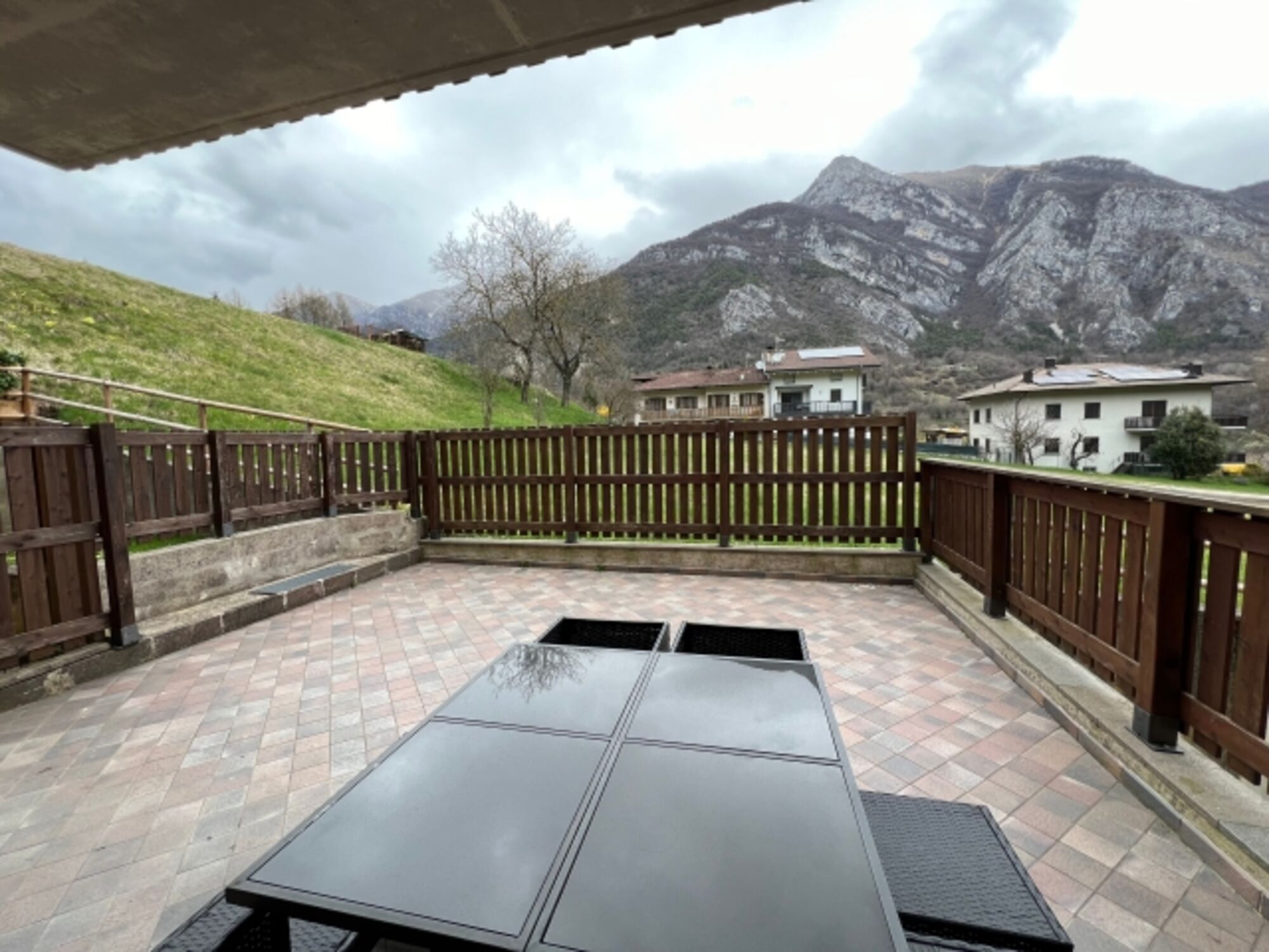 Schicke neu im landestypischen Stil eingerichtete Ferienwohnung für 2 - 4 Personen mit eigener eingezäunten Terrasse fußläufig zum See am Ledrosee in Oberitalien