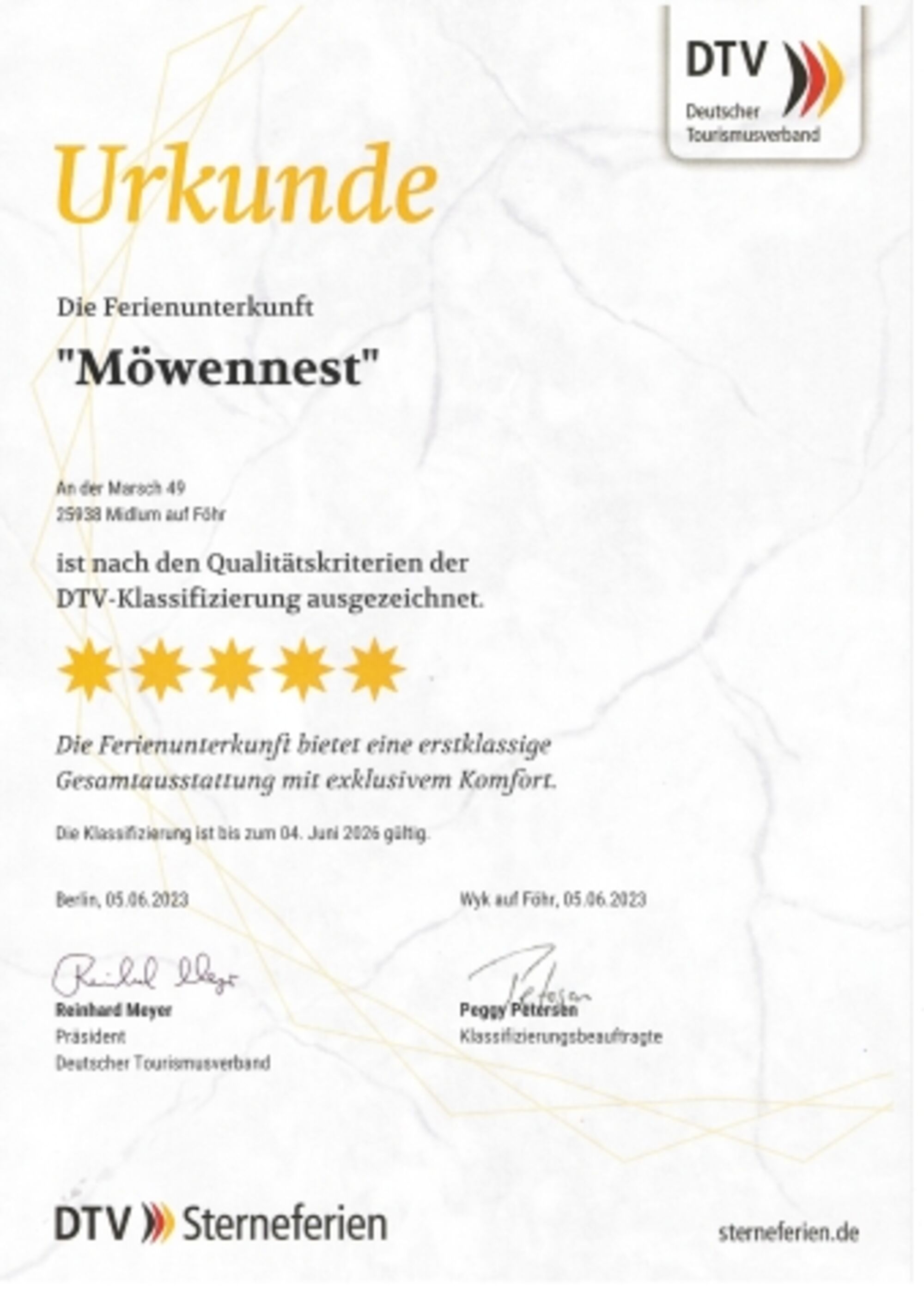 Ferienhaus Möwennest***** in Midlum (Föhr) Sterne nach DTV: F