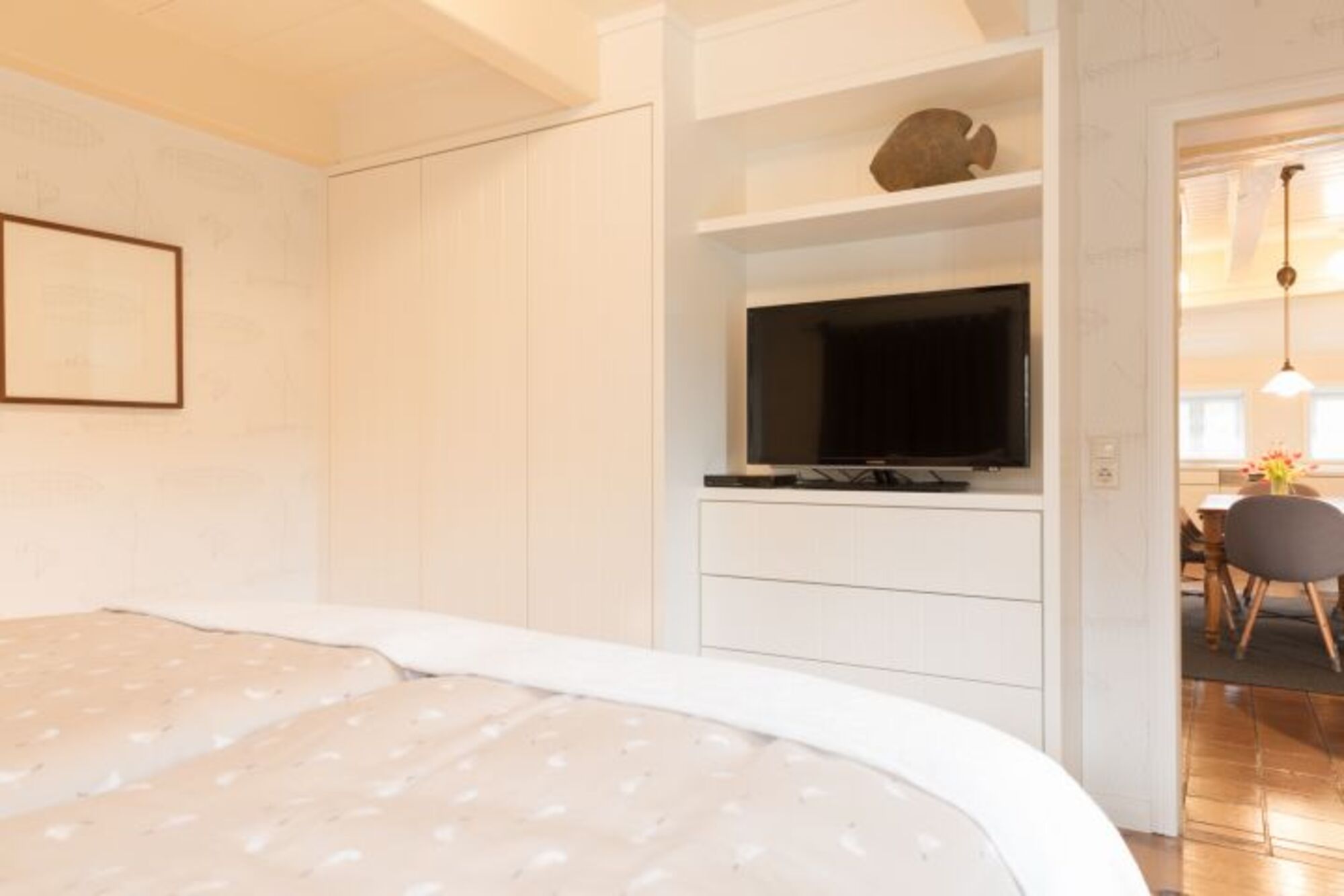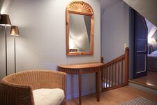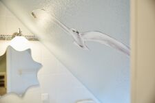 wir haben unser Haus "Möwennest" genannt, da es wie ein Nest kuschelig eingebettet zwischen unseren anderen beiden Häusern liegt. Es wird gerne von Familien oder befreundeten Paaren genutzt, wobei auch zwei Personen hier sehr großzügig wohnen. Die drei Schlafräume teilen sich in EG und OG auf. Sie haben einen gemütlichen Wohnbereich mit Essplatz, der in einen Kaminbereich mit einer ausgewählten Bibliothek übergeht. In der oberen Etage finden unsere Kleinen eine Auswahl an Kinderbüchern und Spielen. In dem abgegrenzten und nicht einsehbaren Gartenanteil können Sie es sich auf den Deckchairs oder im eigenen Strandkorb bequem machen oder auch auf der Terrasse am Esstisch speisen.