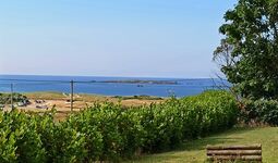 Großer (1400m²) eingezäunter Garten, 700 m zum Strand, Meeresblick schon vom Erdgeschoß.