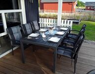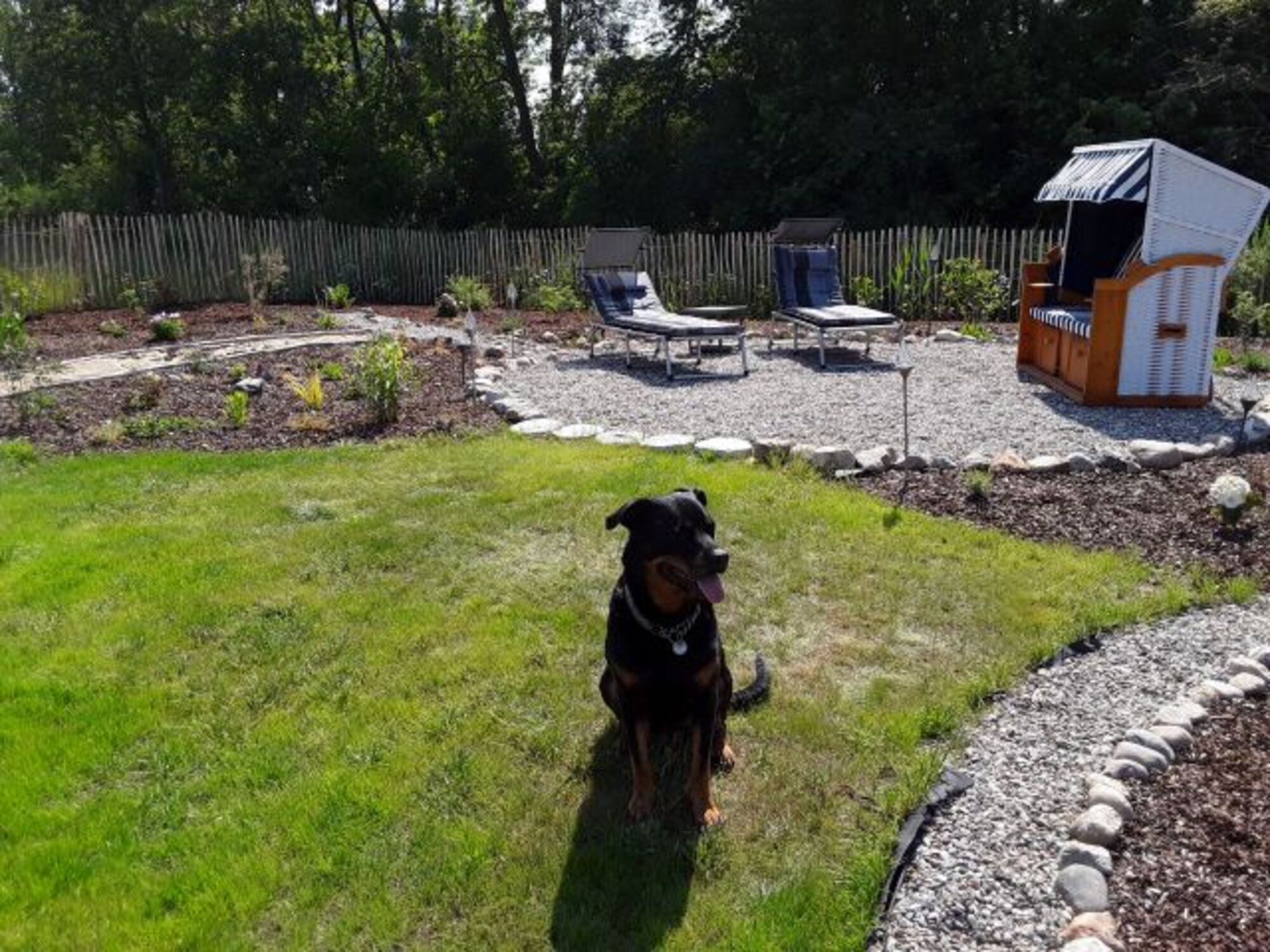 Der 722 m² große und komplett eingezäunte Garten lädt zum Spielen, Verweilen und Relaxen ein. Von April bis Oktober steht im Garten ein Strandkorb zur Nutzung bereit.