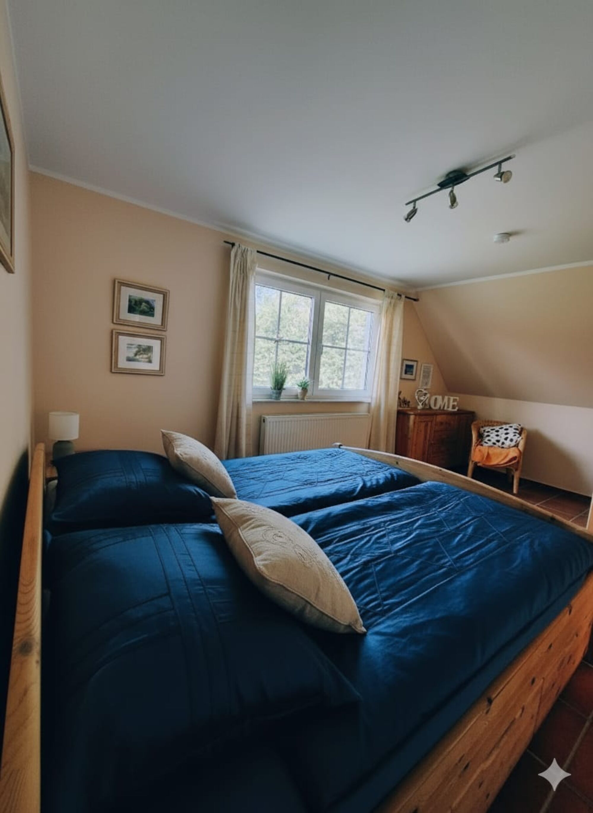 Unsere Doppelhaushälfte ist mit ca. 110 qm sehr großzügig geschnitten, modern eingerichtet und bietet im Obergeschoss mit 2 Schlafzimmern (je 1 Doppelbett) und 1 Schlafzimmer (1 Etagenbett) Platz für 6 Personen. Zusätzlich bieten wir 1 Kinderbett an.