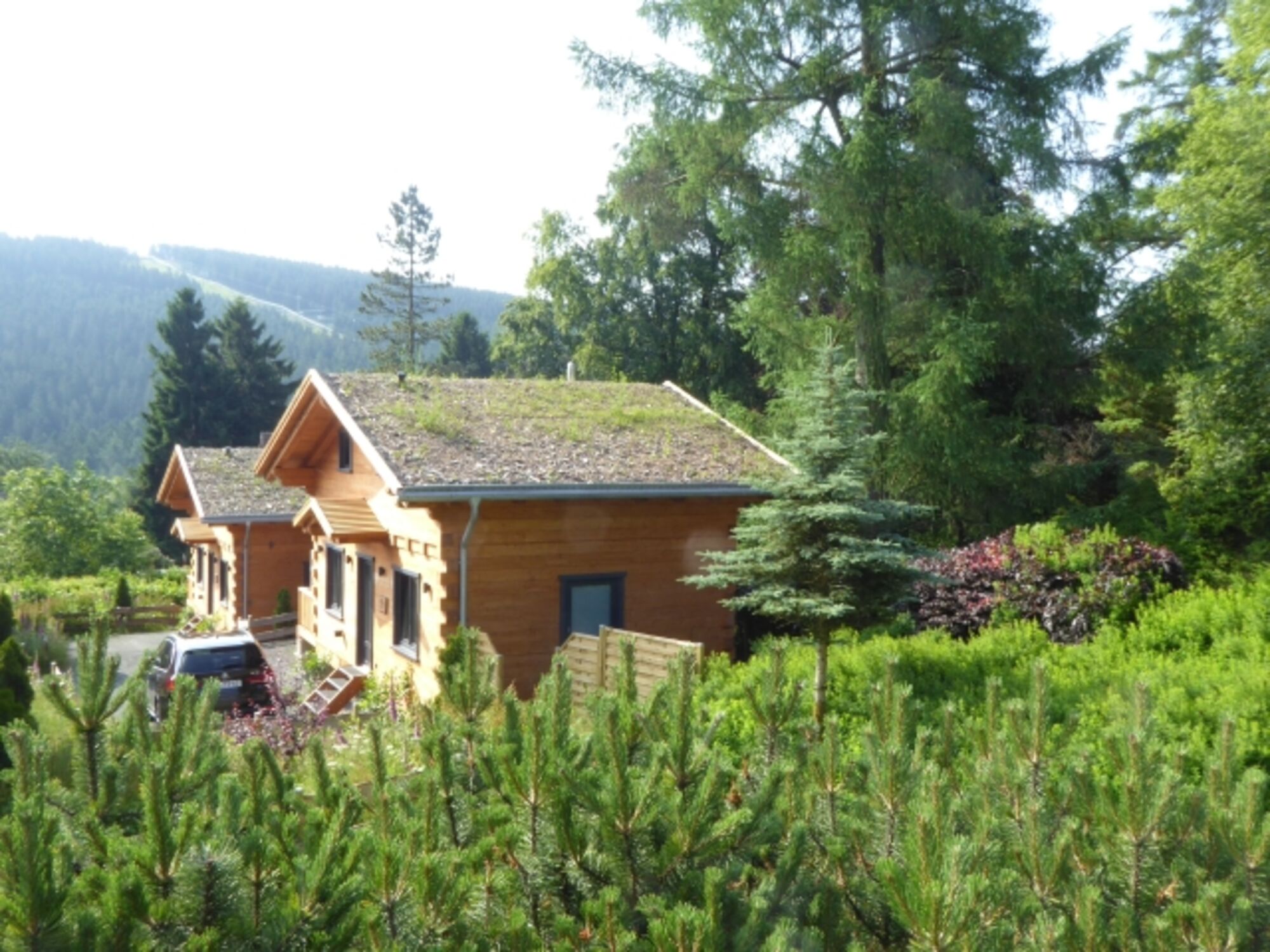 Unsere 2018 neu erbauten Ferienhäuser aus massiven Blockbohlen sind im Alpen-Chalet-Stil, mit je einer Block-Bohlensauna und einem Kaminofen, sowie freiem WLAN ausgestattet. Optisch und technisch auf dem neuesten Stand. Die Häuser sind ca. 70 qm groß. Die großen Panoramafenster sind auf den Erlebnisberg (Bocksberg) ausgerichtet. Jedes Haus verfügt über eine Terrasse mit Gartenmöbel und einen Grill.