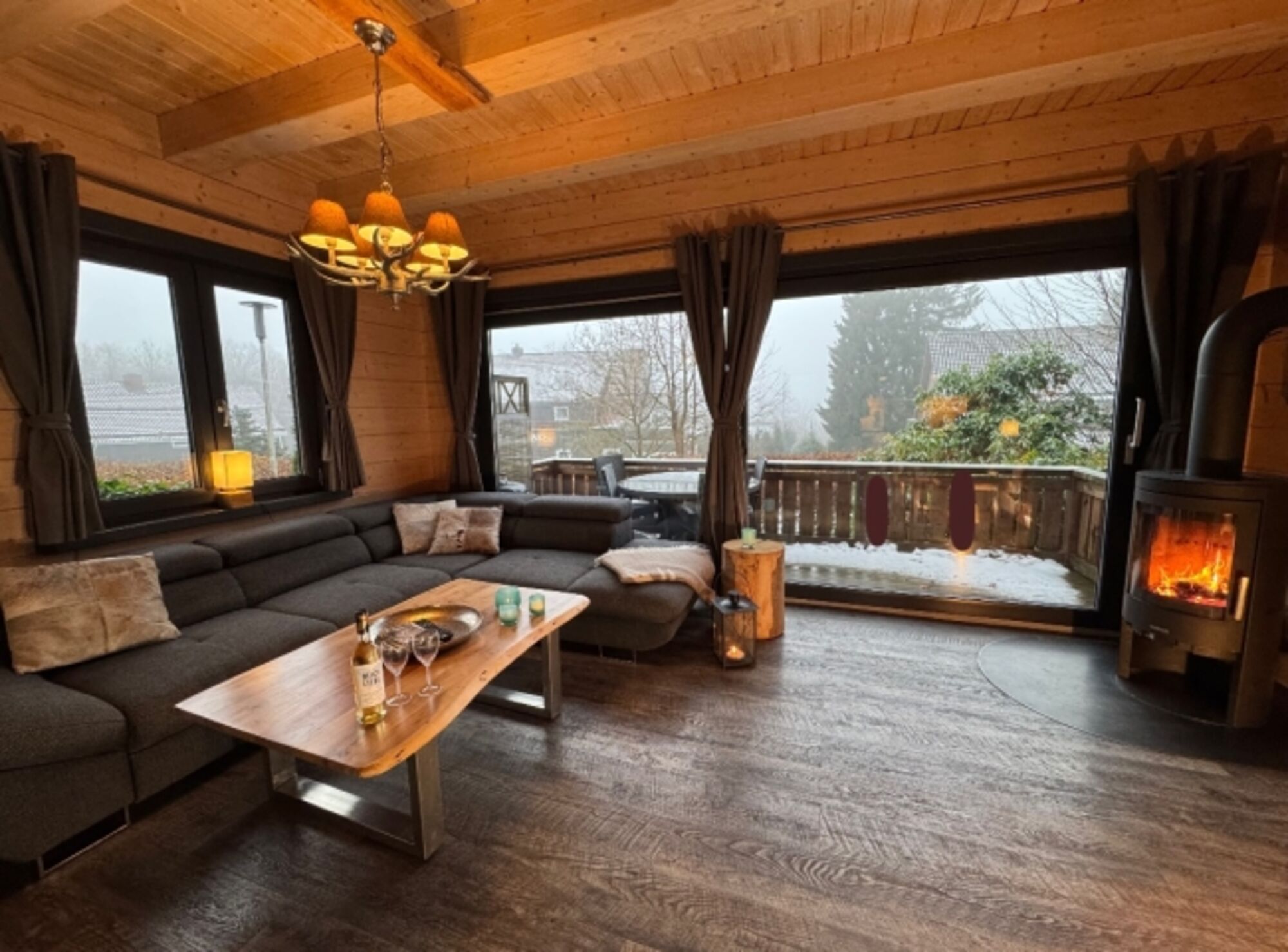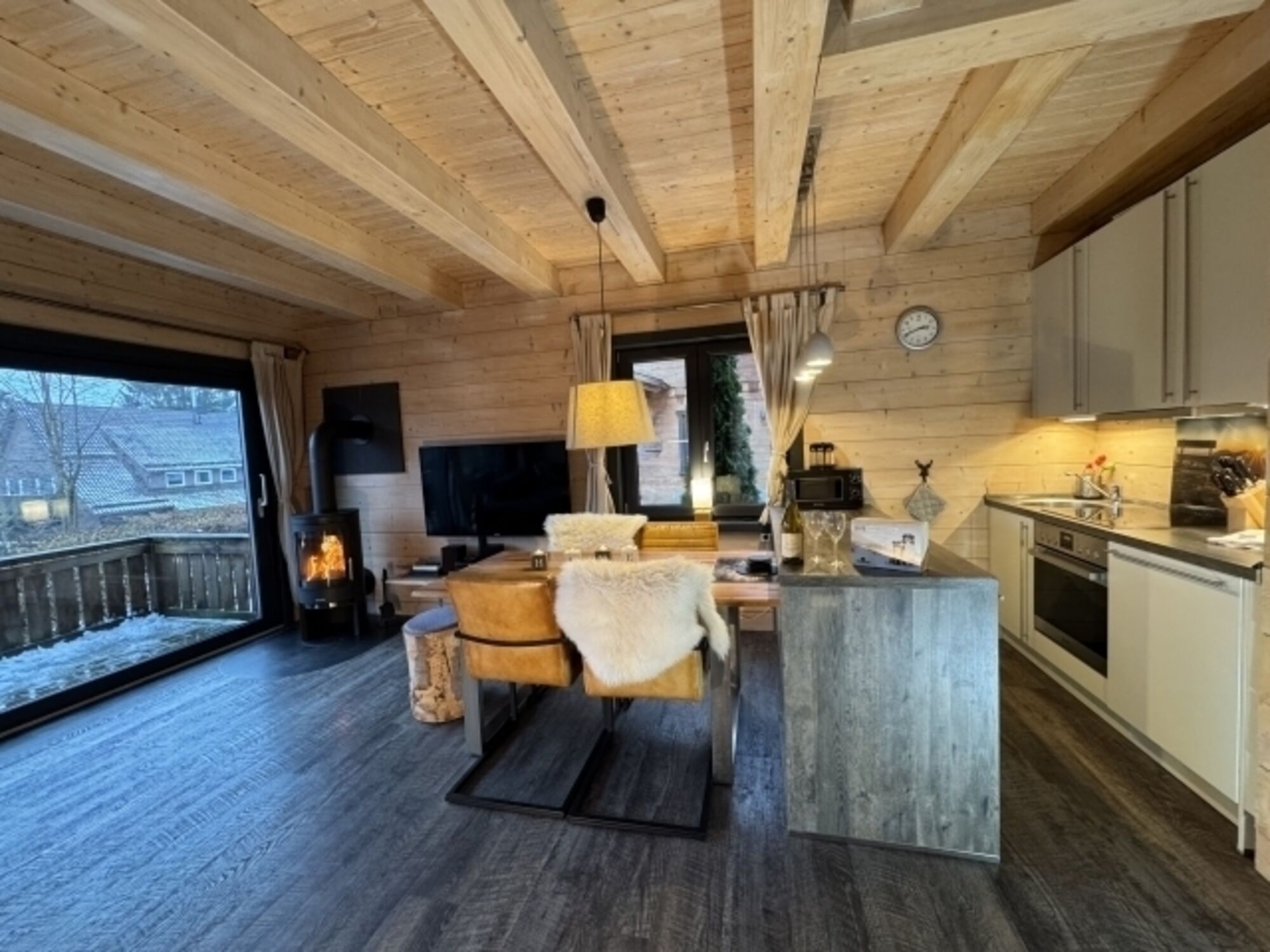 Unsere 2018 neu erbauten Ferienhäuser aus massiven Blockbohlen sind im Alpen-Chalet-Stil, mit je einer Block-Bohlensauna und einem Kaminofen, sowie freiem WLAN ausgestattet. Optisch und technisch auf dem neuesten Stand. Die Häuser sind ca. 70 qm groß. Die großen Panoramafenster sind auf den Erlebnisberg (Bocksberg) ausgerichtet. Jedes Haus verfügt über eine Terrasse mit Gartenmöbel und einen Grill.