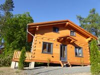 Unsere 2018 neu erbauten Ferienhäuser aus massiven Blockbohlen sind im Alpen-Chalet-Stil, mit je einer Block-Bohlensauna und einem Kaminofen, sowie freiem WLAN ausgestattet. Optisch und technisch auf dem neuesten Stand. Die Häuser sind ca. 70 qm groß. Die großen Panoramafenster sind auf den Erlebnisberg (Bocksberg) ausgerichtet. Jedes Haus verfügt über eine Terrasse mit Gartenmöbel und einen Grill.