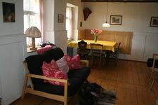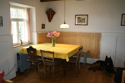 Das urige Bauernhaus hat eine ganz urige Wohnstube mit klassischer Essecke und Kachelofen. Einbauküche mit Herd, Spülmaschine, Kühlschrank mit Gefrierfach, Mikrowelle, Waschmaschine. Relativ kleines Badezimmer mit Dusche/ WC. Im Obergeschoss sind die drei Schlafzimmer.