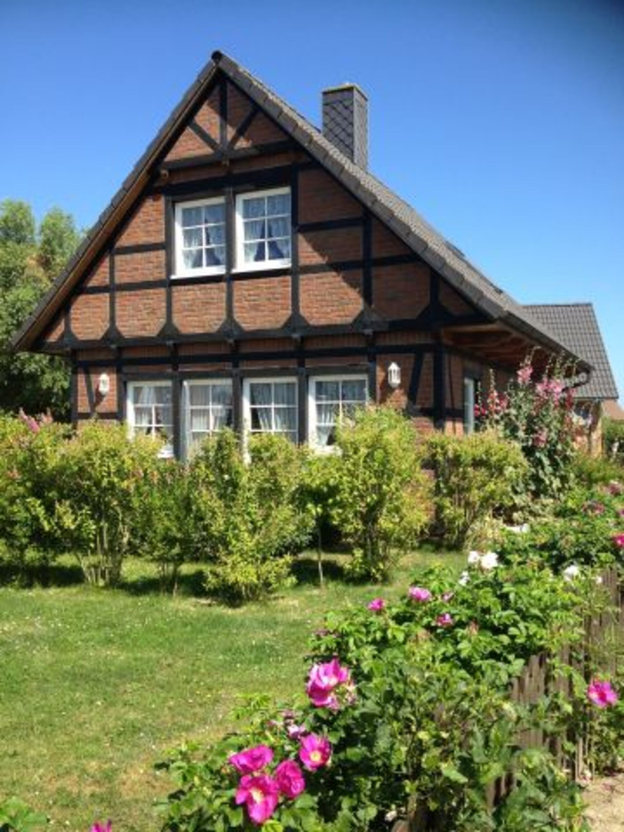 Das helle, sonnige, freistehende Fachwerkhaus liegt nur 200m vom grünen Hauptstrand und Seedeich entfernt. Die liebevoll eingerichtete Ferienwohnung befindet sich im Erdgeschoss und hat eine Süd-, eine West- und eine kleine Ostterrasse inkl. Gartenmöbeln.