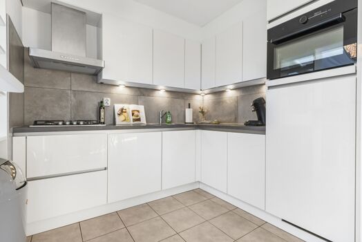 Moderne Küche inkl. Geschirrspüler, Backofen, Mikrowelle, Gasfeld, Kaffeemaschine, Senseo, extra Gefrierschrank in der Abstellkammer.