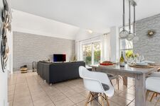 Wir bieten eine freistehende Villa für 6 Personen mit 130 m² Wohnfläche, Wintergarten, Grundstück 435 m², komplett eingezäunter Garten, umlaufende Terrasse mit Hollywoodschaukel und Weber-Grill, 2 Parkplätze am Haus.