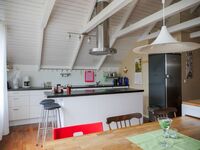 4-Platten Herd, Dunstabzugshaube, Gefrierschrank, Essplatz in der Küche