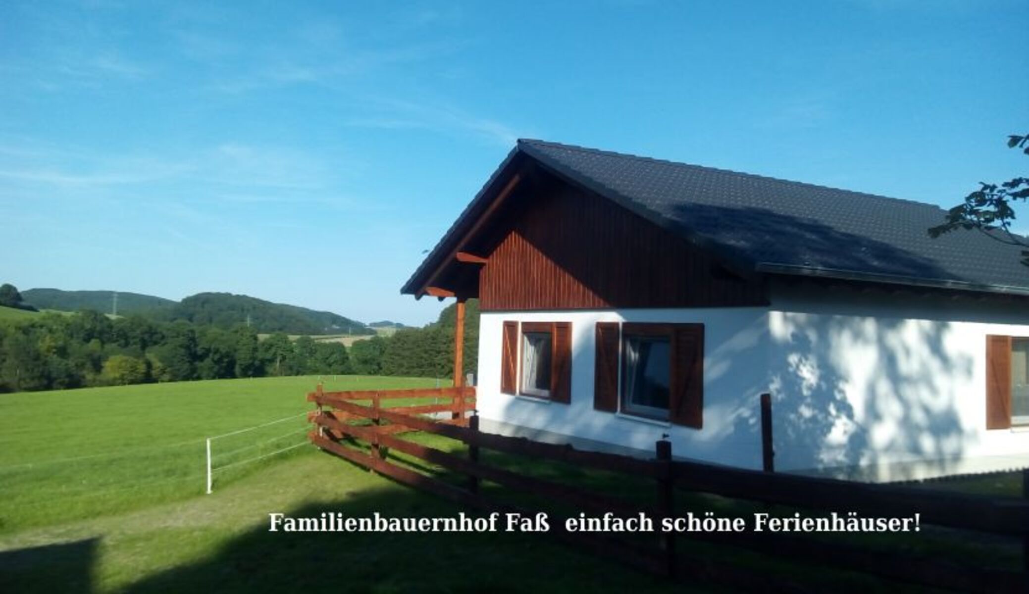 Das gemütliche Ferienhaus liegt in völlig freier Lage oberhalb unserer Kuhweiden. Die Besonderheiten sind der benachbarte Streichelzoo und die schöne große und teilweise überdachte Terrasse.