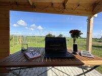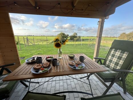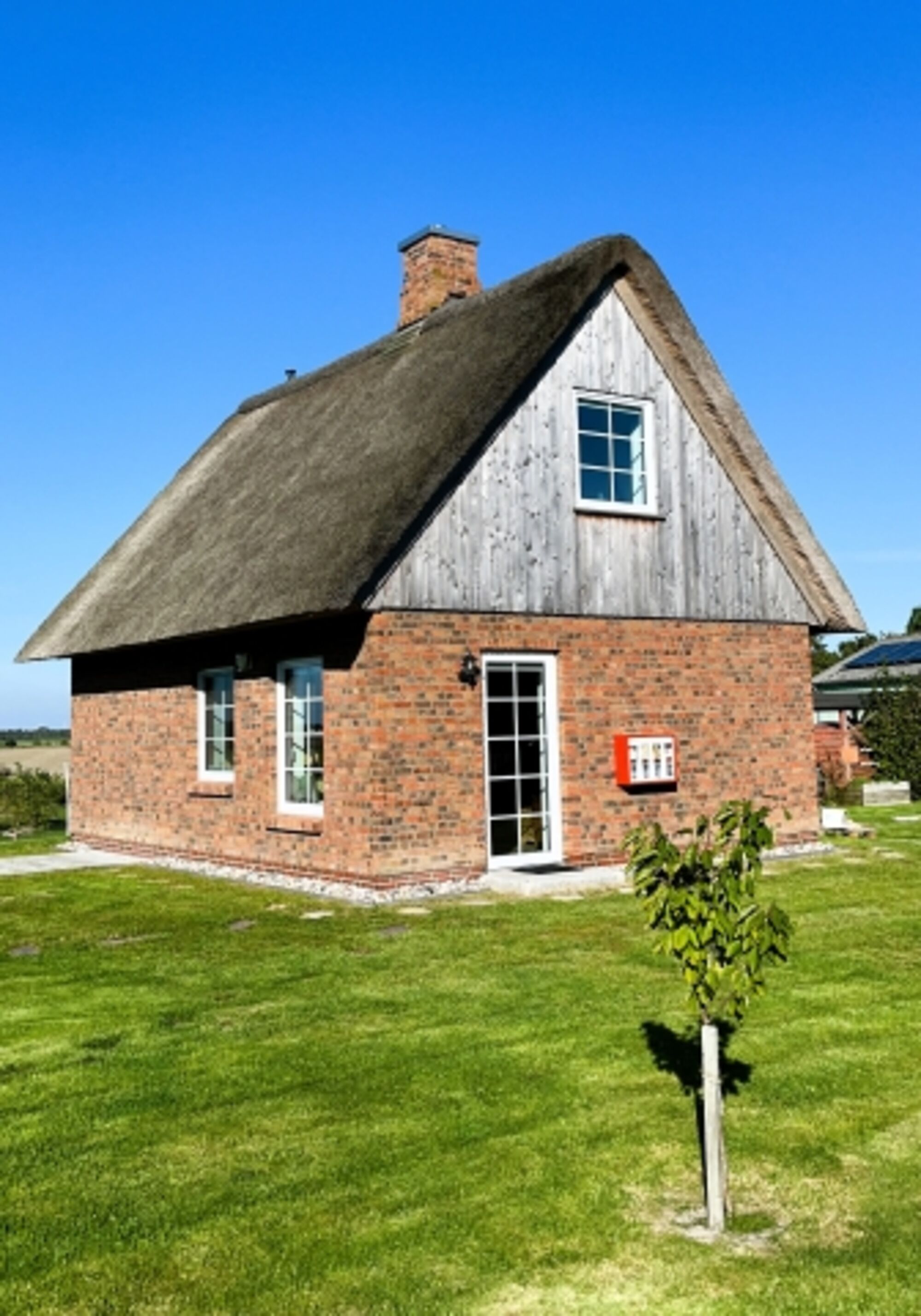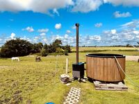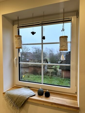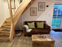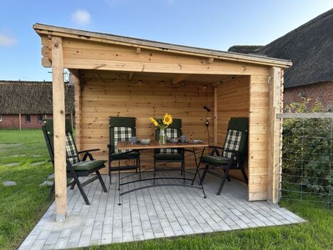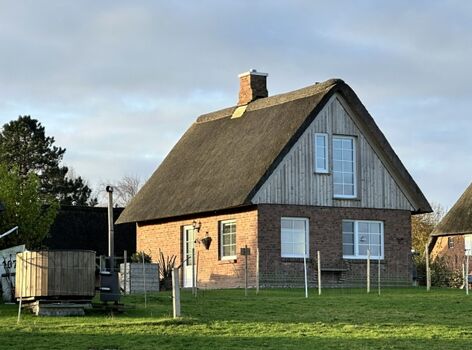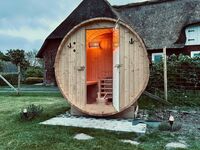 Das kleine, aber feine, reetgedeckte, neugebaute und detailverliebte "Haus Treibsel" hat seinen Platz auf der Bahnenswarft in Dagebüll gefunden. Es ist ein Ort zum Kommen, Bleiben und Wiederkommen. Auf 60qm verteilen sich zwei Schlafzimmer (eines mit einem 160*200m und eines mit einem 180*200m Bett), ein Vollbad mit Dusche und Wanne (hier kann über Deckenboxen die Lieblingsmusik genossen werden - Bluetooth sei Dank), ein Gäste WC im OG, eine offene Wohnküche mit kuscheligen Plätzen um die Füße hochzulegen, auch wenn im Herbst und Winter der Kamin eine kuschelige Atmosphäre zaubert, und auch sonst das ein oder andere gemütliche Plätzchen. Das gesamte Grundstück umfasst ca. 500qm und ist auf 1,20m hoch komplett eingezäunt - wegflitzen wird dir dein Vierbeiner hier nicht so schnell! Hierauf findet ihr eine überdachte, windgeschützte Terrasse, einen Sonnenterrasse, viel Platz zum Toben & Sausen und eine Faßsauna. Eine Eistonne steht zur Abkühlung (oder für sonst die Mutigen unter euch) bereit. Übers ganze Jahr könnt ihr eure gekochten Speisen (ich möchte behaupten, in der Küche wird es euch an nichts fehlen) mit den Kräutern aus dem Hochbeet pimpen. Auf dem Nachbargrundstück steht eine Hottube, der kostenfrei und auf eigene Gefahr genutzt werden kann (Holz besorgt ihr euch bitte selbst). Leider ist dieser nicht uneingeschränkt nutzbar - es ist vom Wind abhängig - wir wollen ja schließlich nicht die Reetdächer in Brand setzen. Ich berate euch gerne, aber seid bitte nicht traurig, wenn die Windrichtung ungünstig ist und ihr in die Badewanne im Haus ausweichen müsst.