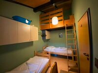 Im zweiten Schlafzimmer (Kinderzimmer) sind zwei normale Einzelbetten und ein Hochbett. An jedem Bett befindet sich eine Leselampe. Bettwäsche kann optinal dazu gebucht werden.