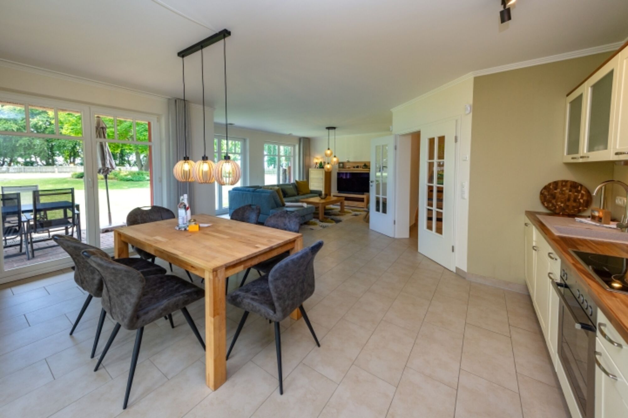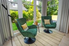 Die großzügige Gartenanlage mit direktem Zugang zum Strand bietet viel Raum für Spiel, Spaß und entspannte Stunden mit der ganzen Familie.