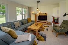 TV-Flachbildschirm, CD-Player, Kaminofen, Eckcouch, Sessel