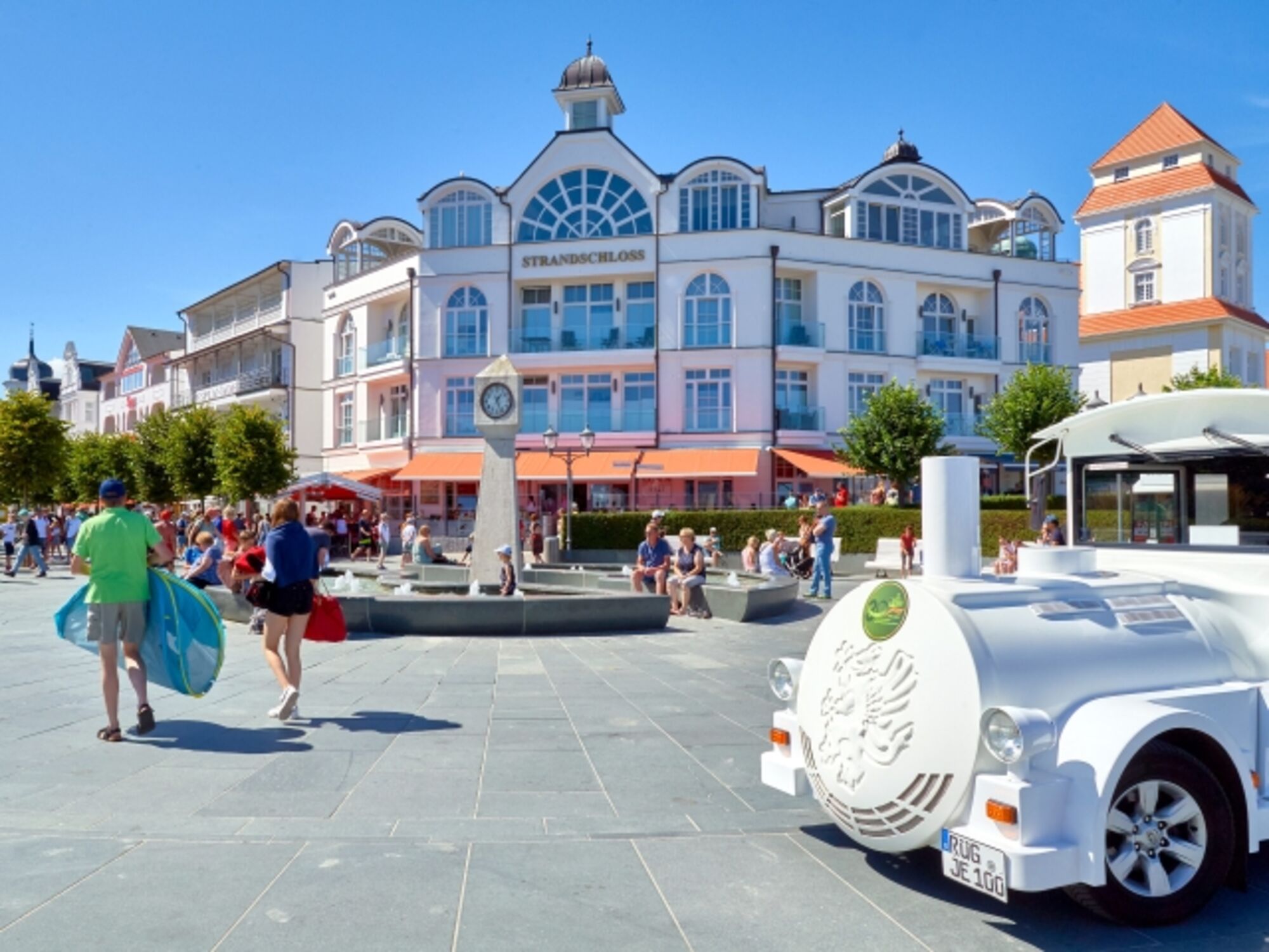 Sobald Sie das Strandschloss verlassen, sind Sie mitten im Herzen des noblen Ostseebades Binz! Straßencafés, Restaurants, Bars, Boutiquen und Geschäfte - alles was das Herz begehrt. Auch ein Supermarkt und eine Drogerie sind nur wenige Meter entfernt.