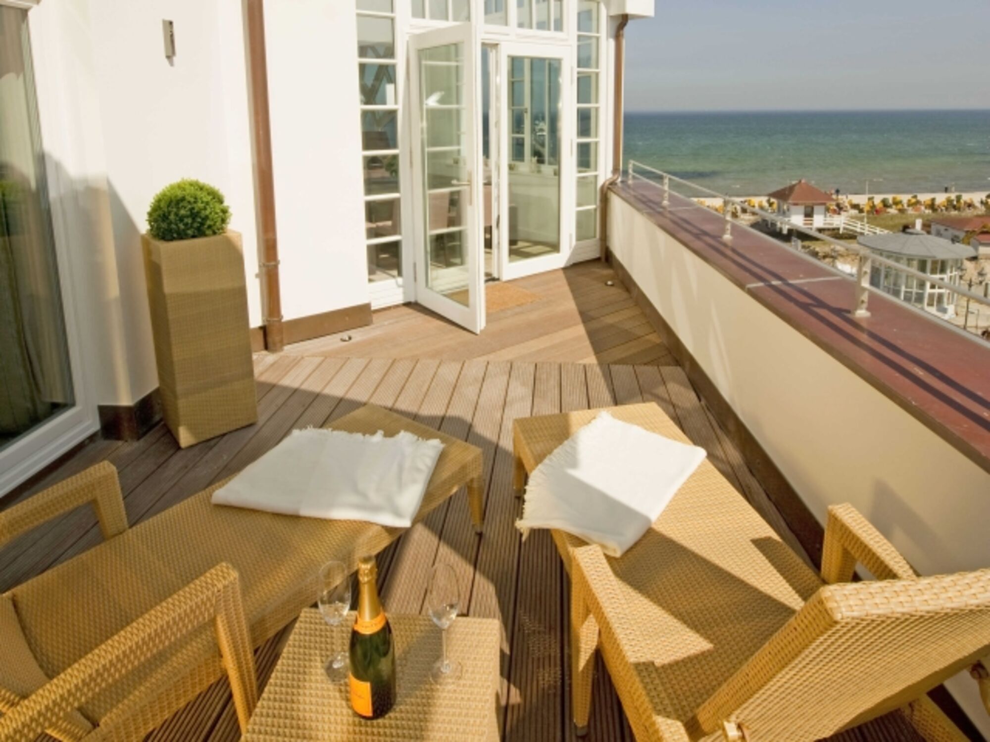 Exklusives 3-Raum-Appartement strandnah, 2 Balkone, seitlicher Meerblick