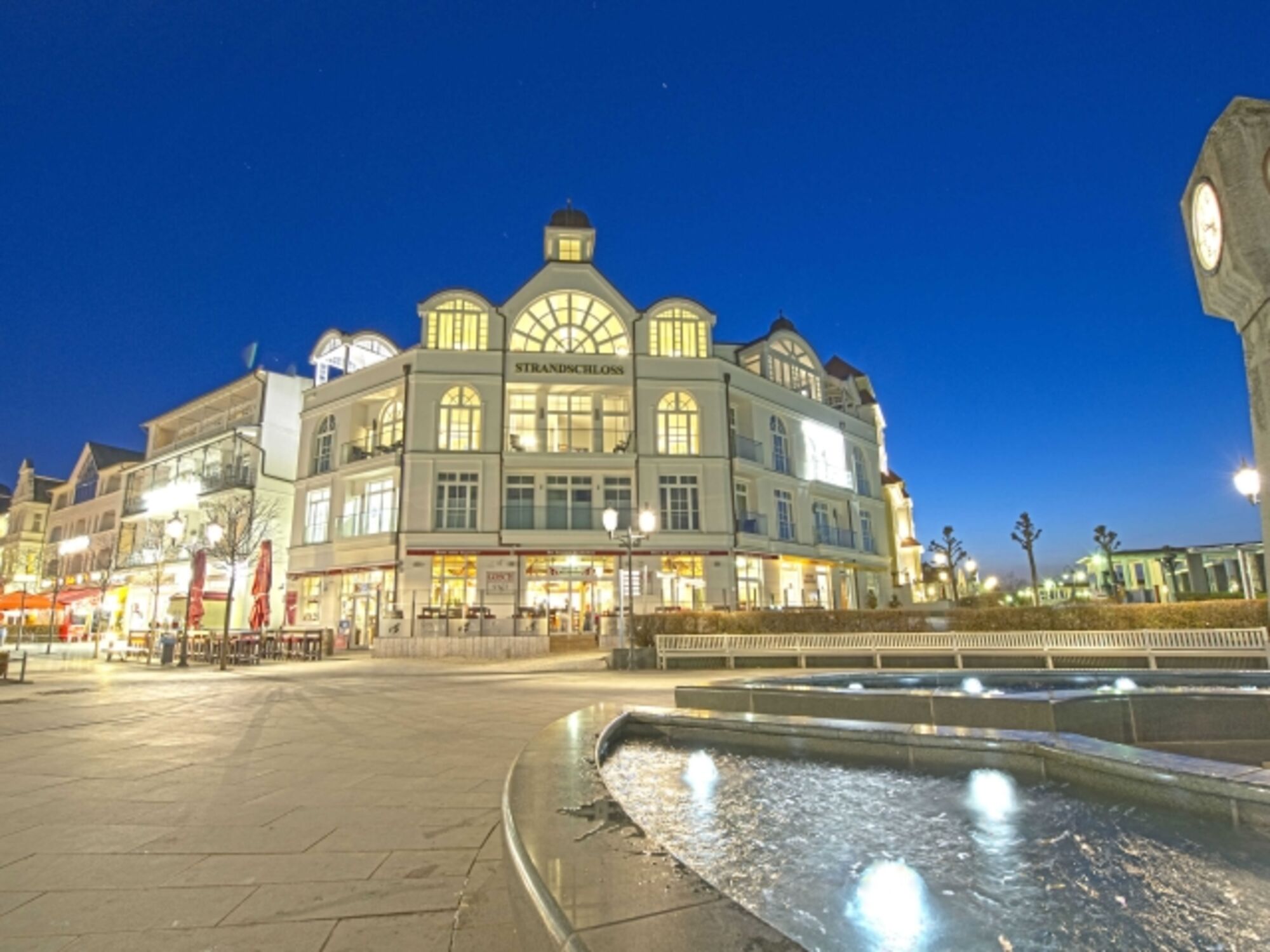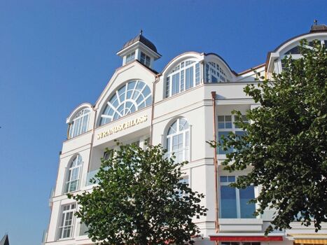 Das „Strandschloss Binz“ befindet sich direkt an der Binzer Strandpromenade, neben dem berühmten Kurhaus Binz, der Seebrücke und unmittelbar an der Fußgängerzone.